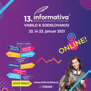 Sejem izobraževanja in poklicev bo potekal v petek in soboto, 22. in 23. 1. 2021, od 9.00 do 18.00 na spletnem mestu...