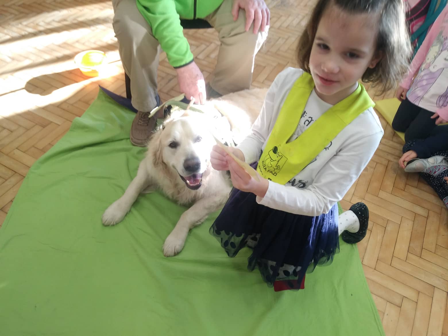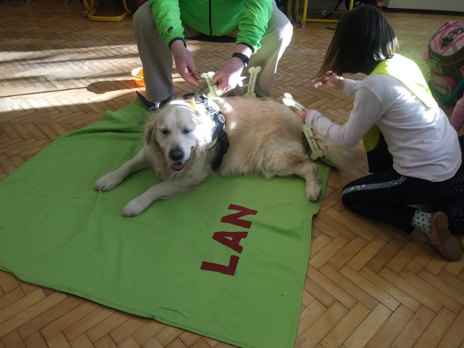 Najboljši del pa je sledil po branju. Vsak učenec je dal poslastico Lanu in Lili, sledilo je druženje s terapevtskim psom ter slovo.