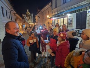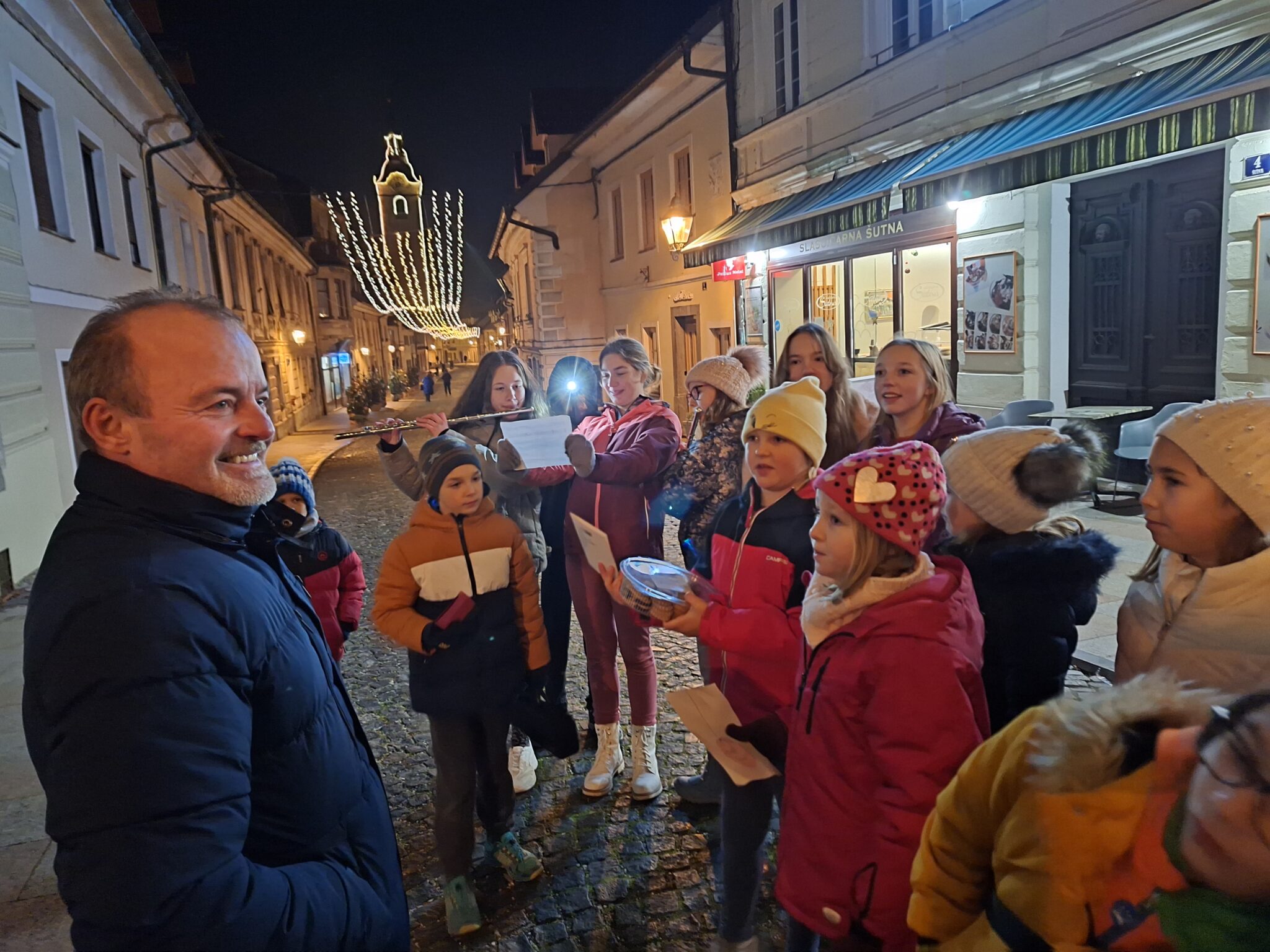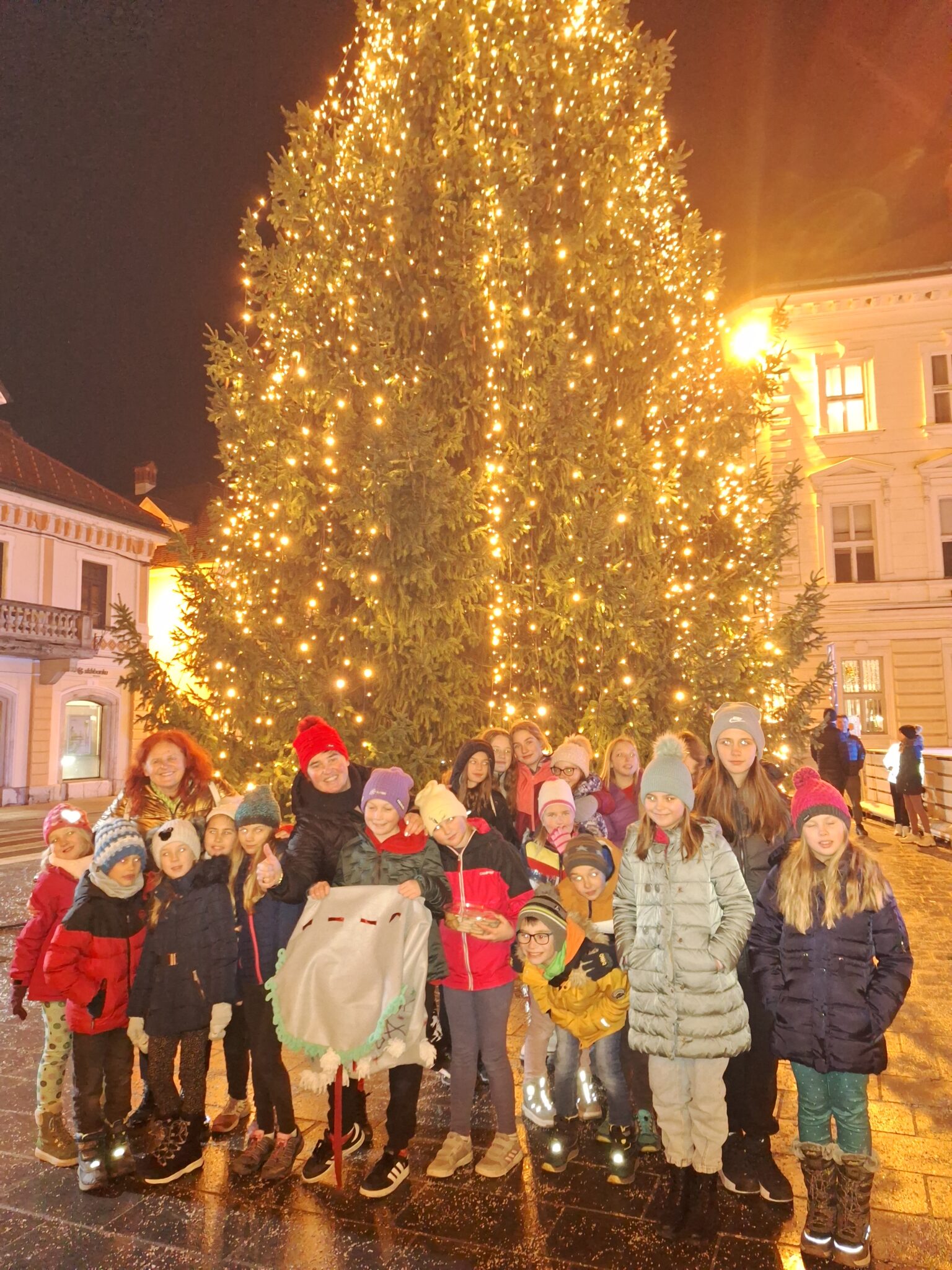 Izdelali smo adventno torbo in jo napolnili s prisrčnimi voščili. Ko se je mrak spustil na zemljo in je Kamnik zasijal v prazničnih lučeh, smo se napotili po kamniških ulicah. Mimoidoče smo nagovorili s pesmijo ob zvokih prečne flavte: »Želimo vam srečen božič, v novem letu pa mir.«