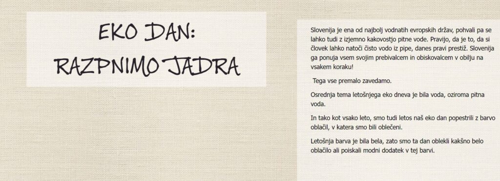Novice EKO DAN: RAZPNIMO JADRA M.L. 10. aprila, 2024 POVEZAVA Deli povezavo: Continue Reading Previous TRADICIJA NAŠE ŠOLE »PEŠ SE DALEČ PRIDE«Next NA OŠ FRANA ALBREHTA SMO PRAZNOVALI SVETOVNI DAN ZDRAVJA Več iz kategorije Novice DRŽAVNO CANKARJEVO TEKMOVANJE Sara Zalesnik 10. marca, 2026 Novice Področno tekmovanje v ekipnem šahu – dokaz poguma, znanja in vztrajnosti Domen Rek 9. marca, 2026 Novice Bralni ambasadorji Sara Zalesnik 8. marca, 2026