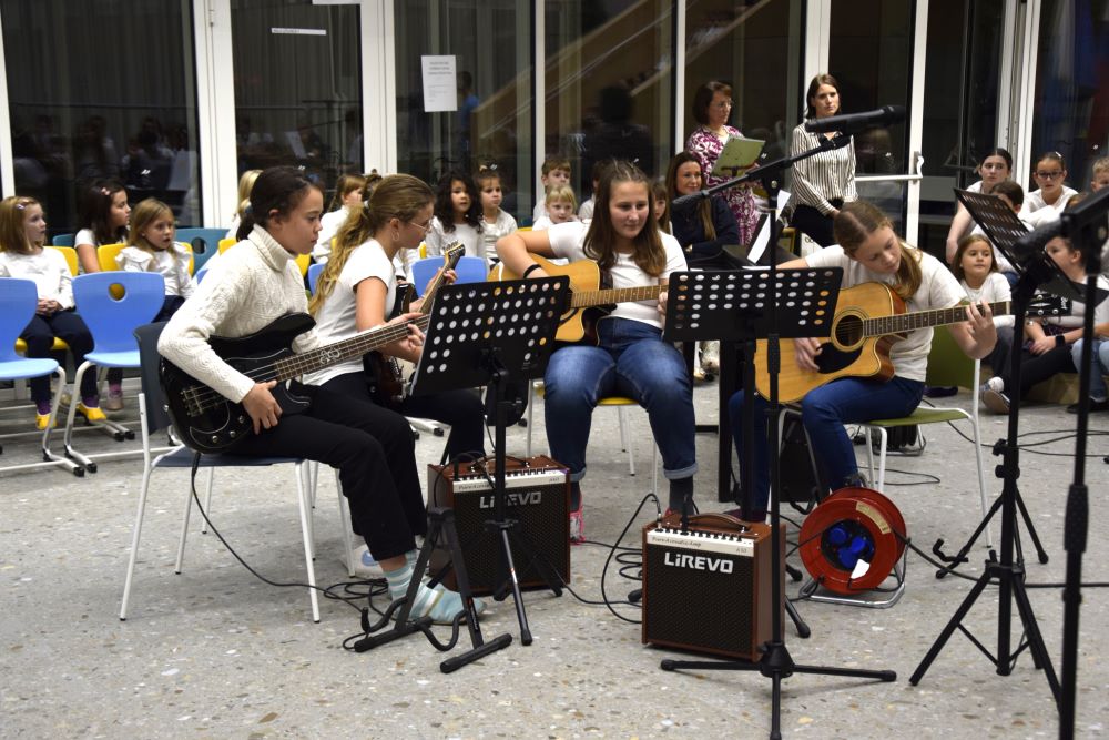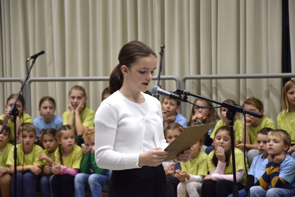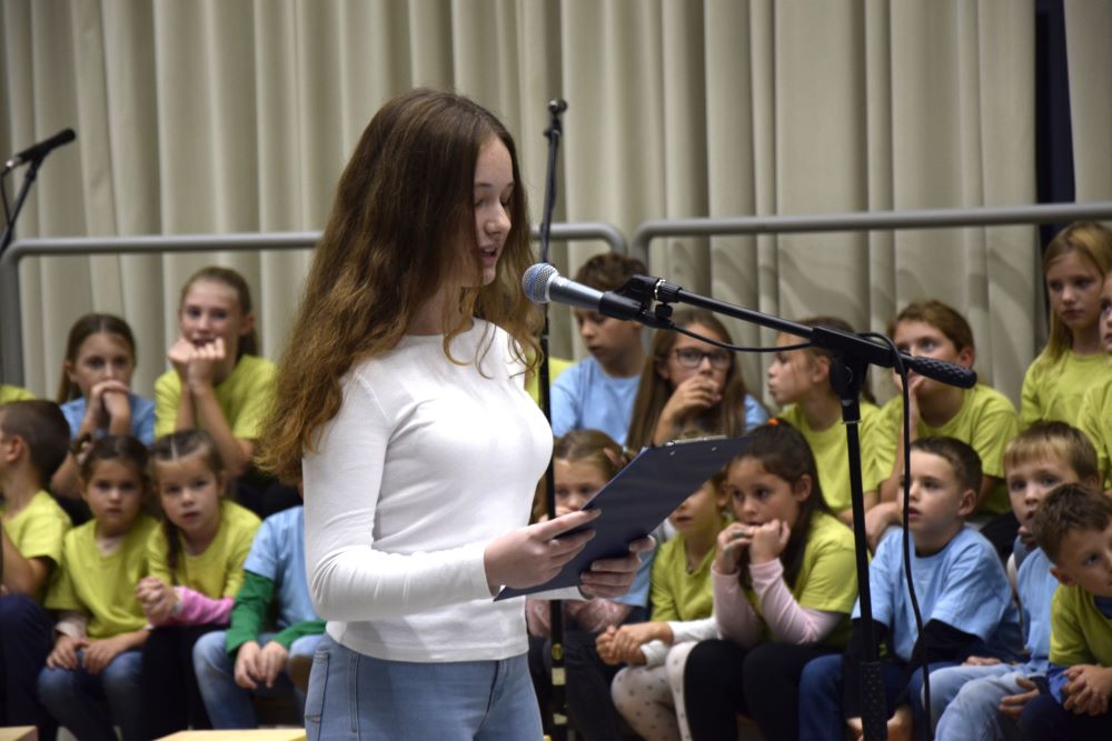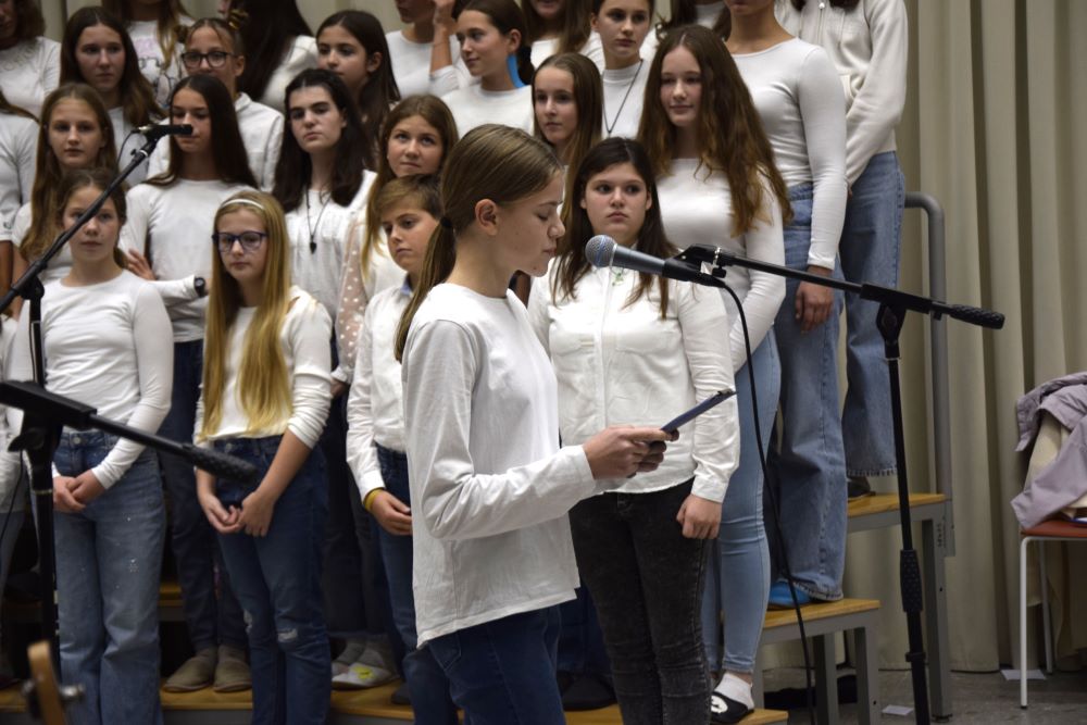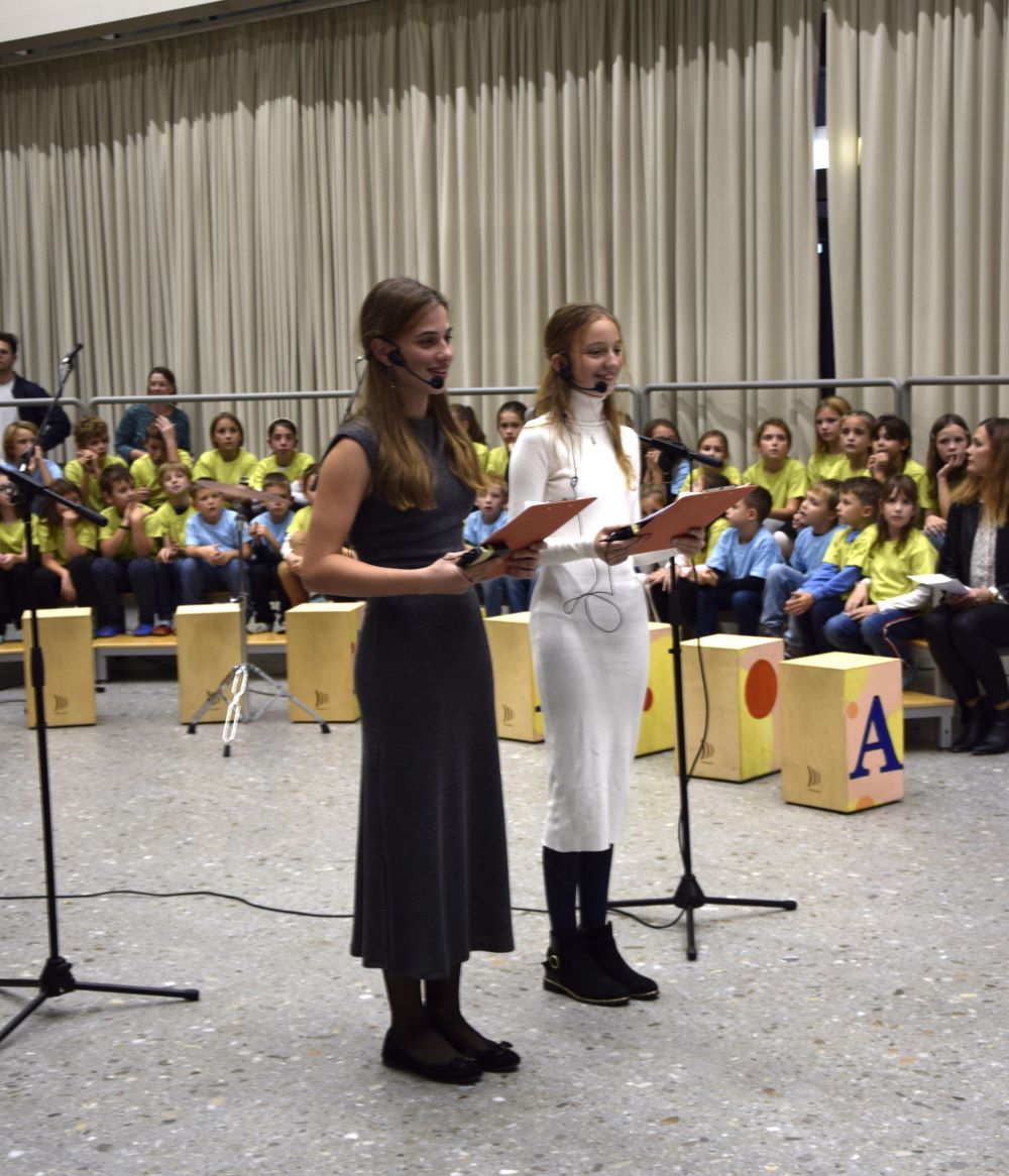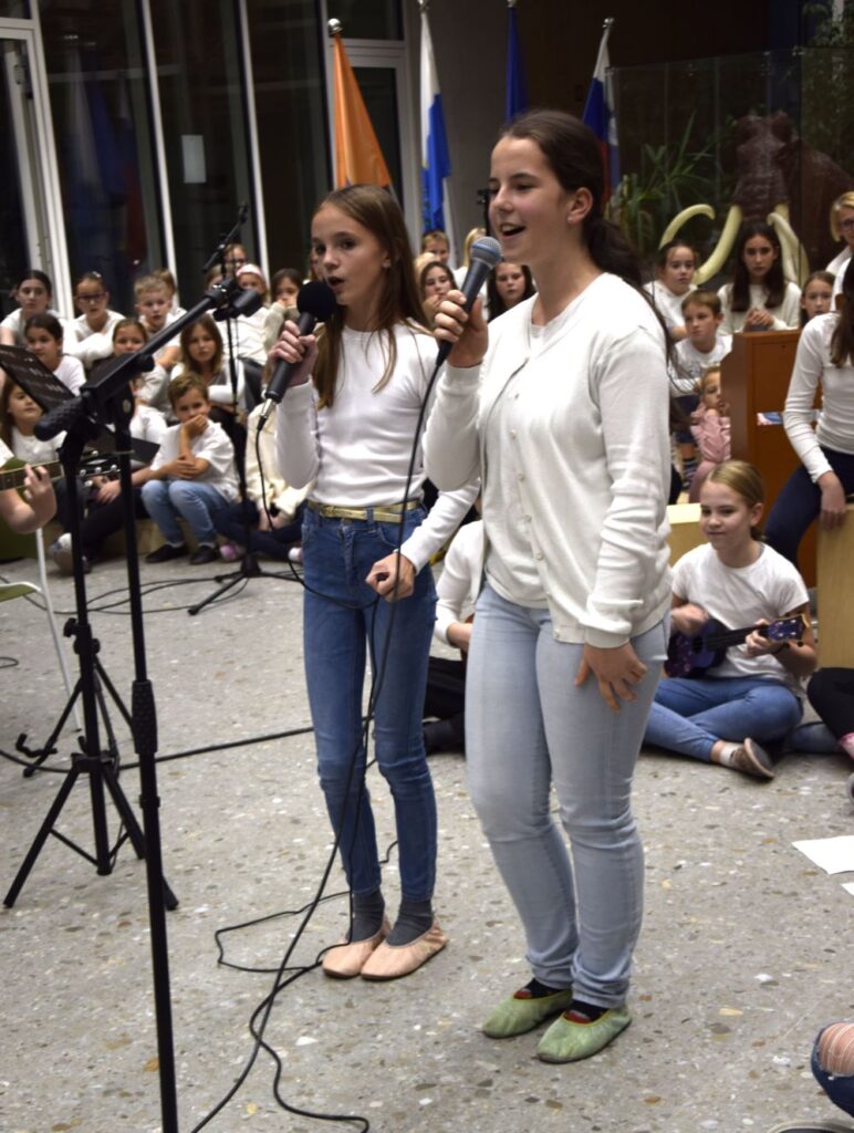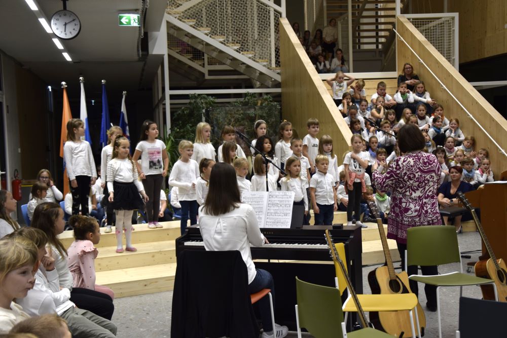 Nova šola je kraj novih začetkov, priložnosti in ustvarjalnosti, in prav zato smo se odločili, da ta večer napolnimo z umetnostjo v vseh njenih oblikah. Kar osem pevskih zborov iz matične šole in podružničnih šol nas je popeljalo skozi glasbene trenutke s pesmimi o šoli, ki so nas spomnile na vse tiste dragocene trenutke, ki jih delimo v šolskih klopeh. Svoj glasbeni pečat je dodal tudi naš šolski bend, ki je s svojo energijo poskrbel, da je večer zaživel v ritmu mladostne ustvarjalnosti. Poleg glasbe smo prisluhnili tudi recitacijam pesmi Frana Albrehta in njegove žene Vere Albreht, ki sta nas svojimi besedami popeljala v svet poezije, bogate z občutji in premišljevanji o življenju. Recitirale so jih učenke Katja Perne, Živa Šalamun Prešeren, Ajda Zupan, Polona Tišler in Julija Pušnik. Poleg glasbenega dela večera smo odprli tudi razstavo likovnih in literarnih del naših učencev, nastalih v okviru natečaja šolske knjižnice in v sodelovanju z učiteljico likovne vzgoje, Anamarijo Erčulj ter razstavo klekljanih izdelkov, ki so nastali pod mentorstvom učiteljice Metke Bizjak in Marije Ropas. Čudovito avtorsko pesem o lepotah klekljanja nam je recitirala tudi učenka Tjaša Golob. Celoten umetniški večer pa sta mojstrsko povezovali naši dve učenki – Brina Manja Slak in Karolina Kuhar.