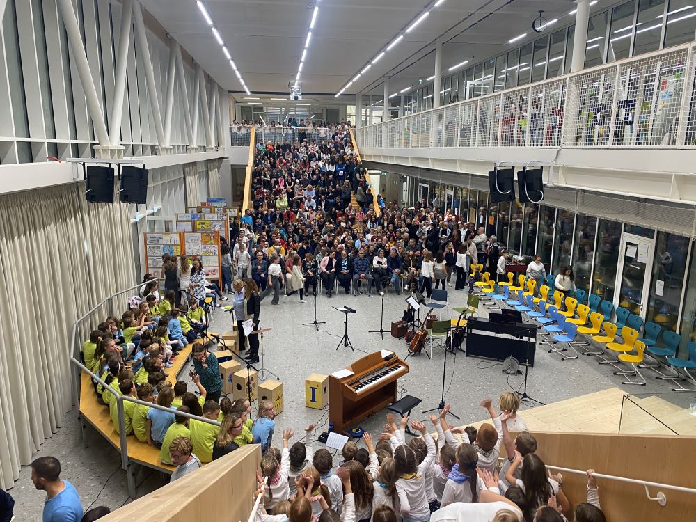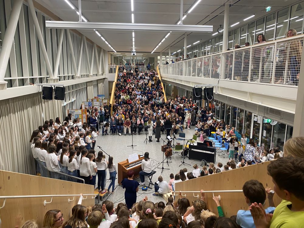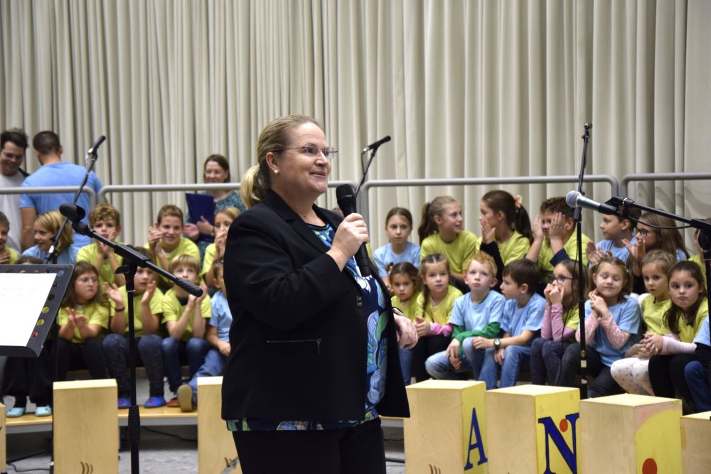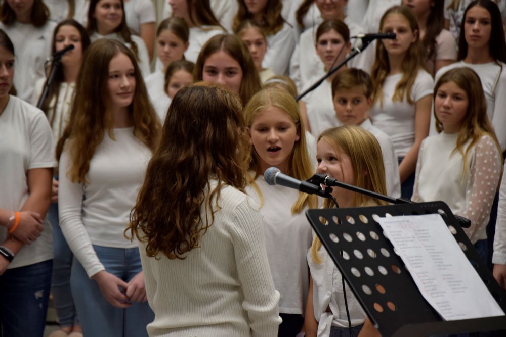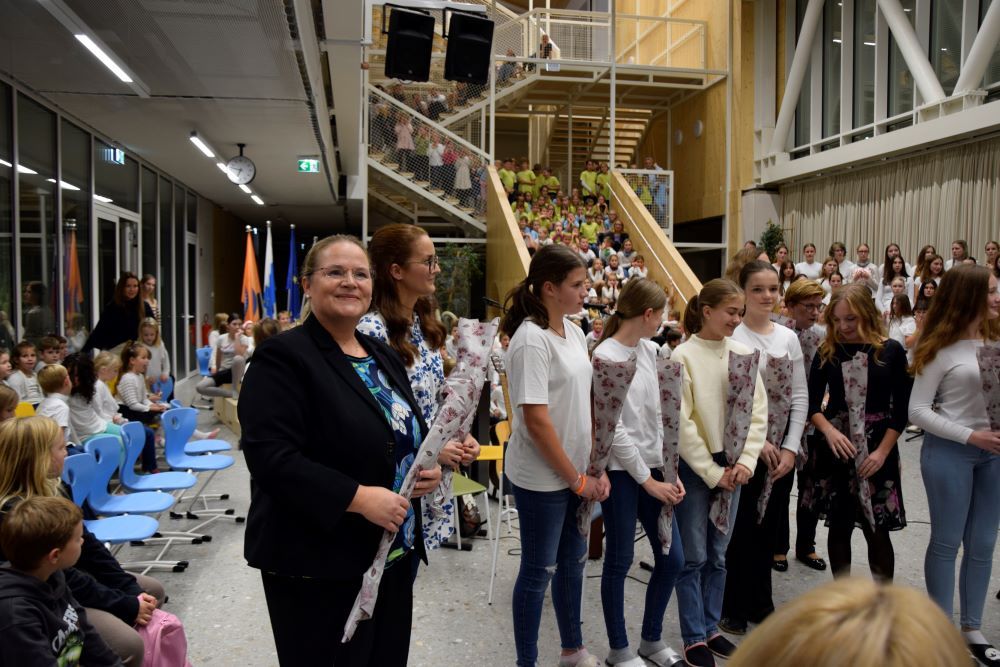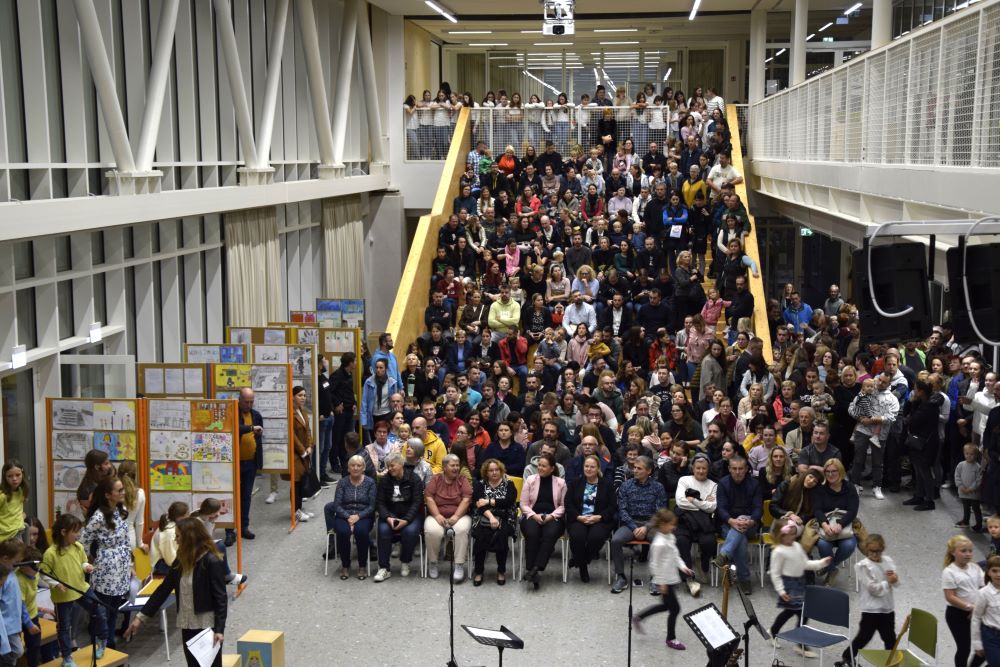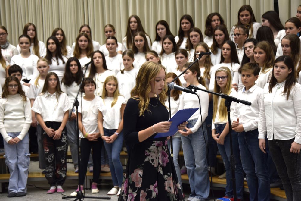 Nova šola je kraj novih začetkov, priložnosti in ustvarjalnosti, in prav zato smo se odločili, da ta večer napolnimo z umetnostjo v vseh njenih oblikah. Kar osem pevskih zborov iz matične šole in podružničnih šol nas je popeljalo skozi glasbene trenutke s pesmimi o šoli, ki so nas spomnile na vse tiste dragocene trenutke, ki jih delimo v šolskih klopeh. Svoj glasbeni pečat je dodal tudi naš šolski bend, ki je s svojo energijo poskrbel, da je večer zaživel v ritmu mladostne ustvarjalnosti. Poleg glasbe smo prisluhnili tudi recitacijam pesmi Frana Albrehta in njegove žene Vere Albreht, ki sta nas svojimi besedami popeljala v svet poezije, bogate z občutji in premišljevanji o življenju. Recitirale so jih učenke Katja Perne, Živa Šalamun Prešeren, Ajda Zupan, Polona Tišler in Julija Pušnik. Poleg glasbenega dela večera smo odprli tudi razstavo likovnih in literarnih del naših učencev, nastalih v okviru natečaja šolske knjižnice in v sodelovanju z učiteljico likovne vzgoje, Anamarijo Erčulj ter razstavo klekljanih izdelkov, ki so nastali pod mentorstvom učiteljice Metke Bizjak in Marije Ropas. Čudovito avtorsko pesem o lepotah klekljanja nam je recitirala tudi učenka Tjaša Golob. Celoten umetniški večer pa sta mojstrsko povezovali naši dve učenki – Brina Manja Slak in Karolina Kuhar.
