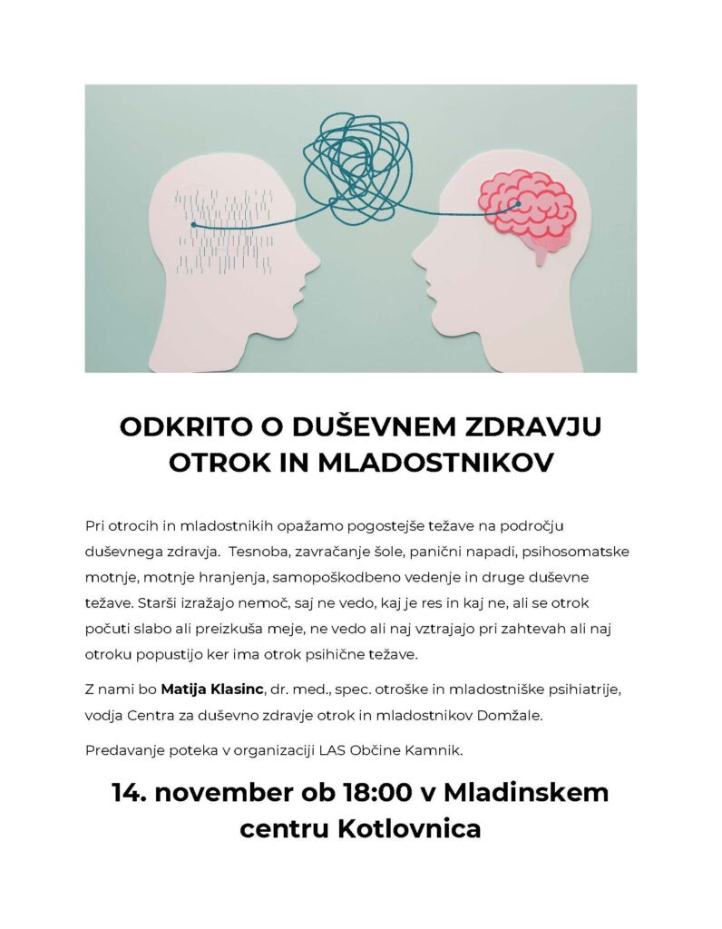 Novice ODKRITO O DUŠEVNEM ZDRAVJU OTROK IN MLADOSTNIKOV M.L. 9. novembra, 2023 Deli povezavo: Continue Reading Previous 2. KARIERNI SEJEM V KAMNIKU 2023Next SVETOVALNI KLEPET ZA MLADE Z IZKUŠNJO SPLETNEGA NASILJA Več iz kategorije Novice Zbiramo prostovoljne prispevke za sadike paradižnikov in paprik Brane Božič 20. aprila, 2026 Novice OBČINSKO TEKMOVANJE V MALI ODBOJKI Sara Zalesnik 20. aprila, 2026 Novice EKSKURZIJA V RIM – zadnji dan Sara Zalesnik 16. aprila, 2026