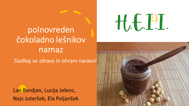 Tudi naša druga mlada ekipa H.E.P.I. , v zasedbi Lan Bordjan, Lucija Jelenc, Nejc Juteršek, Ela Poljanšek z mentorico Rosana Kleindienst, je odlično predstavila in zagovarjala svojo poslovno idejo polnovrednega čokoladno lešnikovega namaza H.E.P.I. in prejela priznanje za uvrstitev v finale.