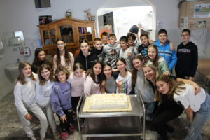 Prebudili smo se v megleno in oblačno jutro, a to nas ni ustavilo. Prvi izziv je bil postavljanje bivaka iz vrvi, šotorskega platna in naravnih materialov na tleh. Raziskali smo ugodne lokacije, pometli tla pod bivakom in čimbolj napeli strehe, da nas ne bi premočilo. Izkušnja je bila več kot dragocena. Nato smo se odpravili na toplo in se preizkusili v petju koroških pesmi. Najbolj poznana je bila Toni ma pa lepo kapo in pri vseh pesmih smo morali brskati po slovarju, da smo sploh kaj razumeli. Pri kosilu nas je CŠOD prijetno presenetil z domačo čokoladno-bananino torto, saj je naša Inja praznovala rojstni dan. Po krepčilnem kosilu pa je sledilo sankanje na bližnjem hribu. Najprej smo zorali ledino, v 3. rundi sankačev pa je bila proga že precej pripravljena za dvig našega adrenalina. Vse skupaj smo dopolnili s kepanjem in zabava na snegu je bila popolna. Večer pa je minil v povezanosti z OŠ Rečica ob Savinji. Njihova in naša šola sta se predstavili z različnimi pevskimi, igralskimi in plesnimi točkami, na koncu pa smo skupaj zapeli Belo snežinko. Sledilo je zelo prijetno druženje in spletli smo začetke novih poznanstev in prijateljstev. Čas nam je hitro minil in bili smo kar razočarani, da moramo že spat. Na srečo pa je v četrtek zvečer še gavda … 🙂