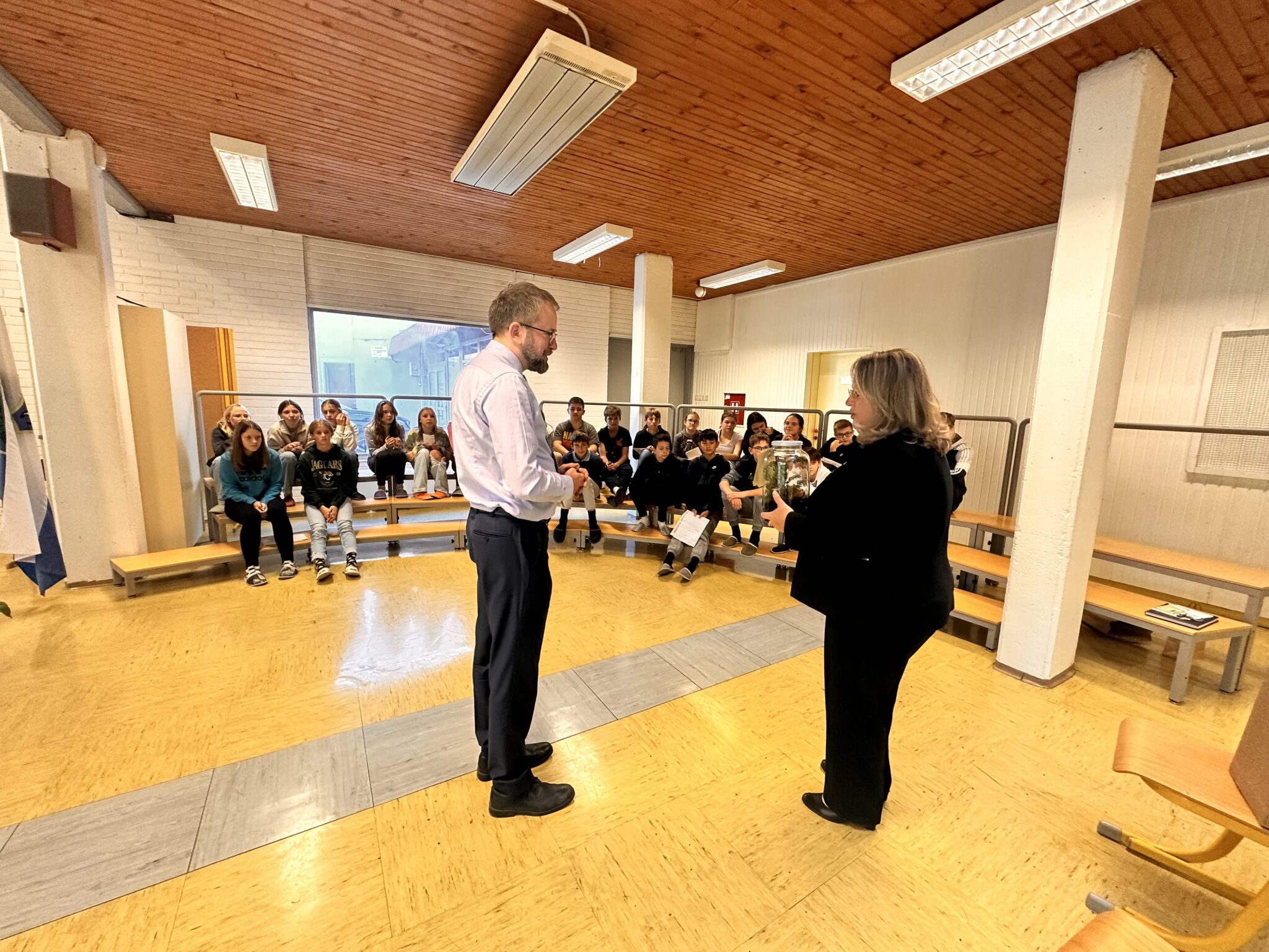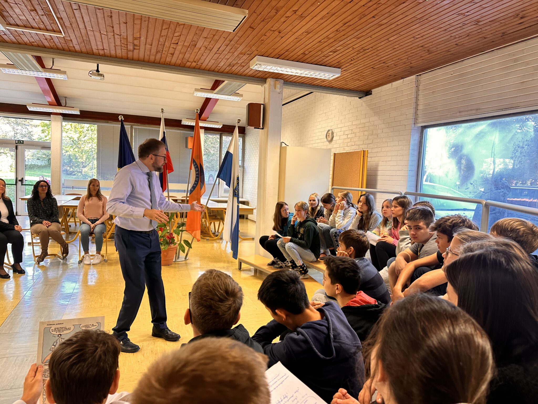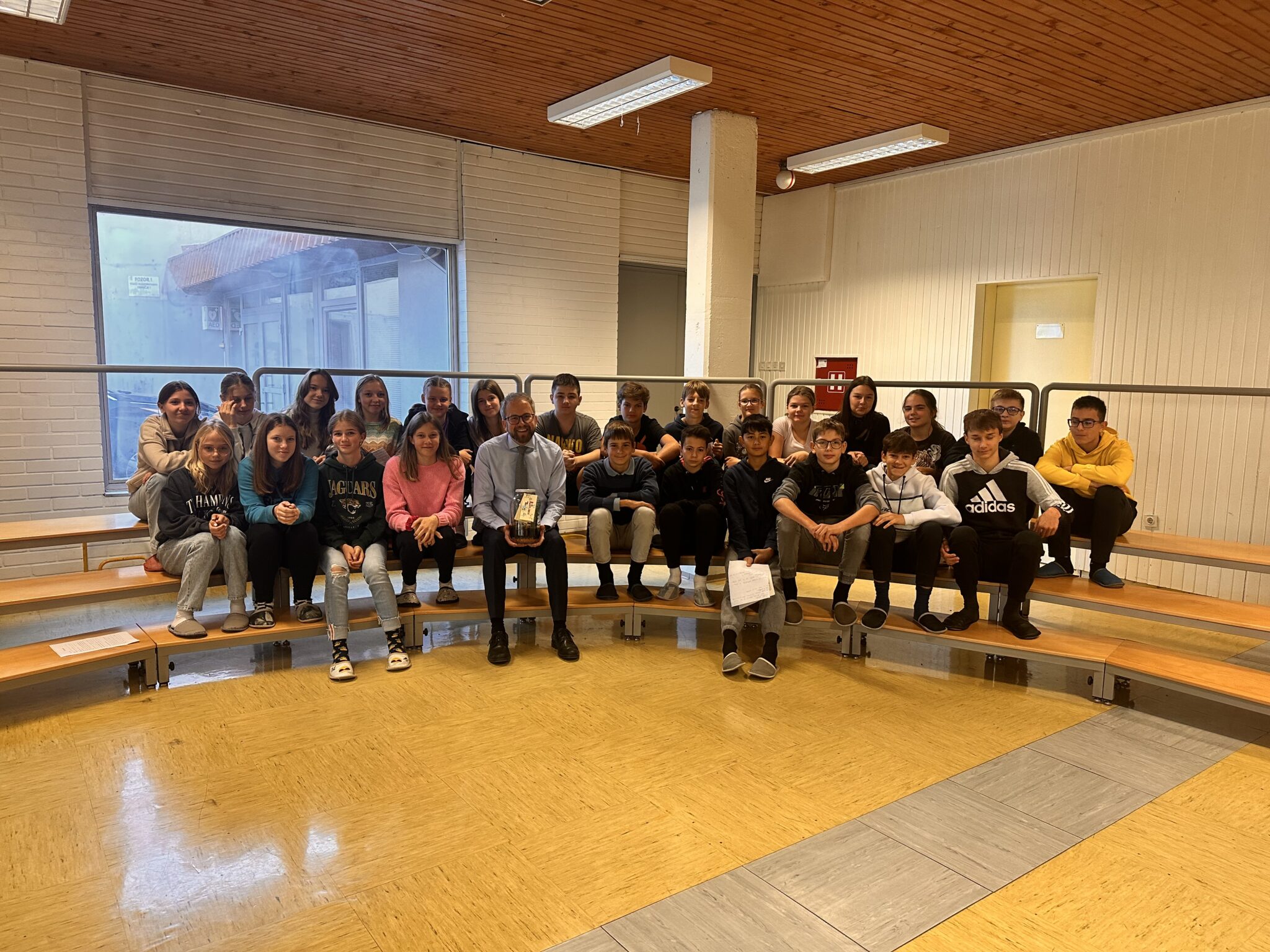 Predsednik Ustavnega sodišča dr. Matej Accetto se je v torek, 17. 10. 2023, srečal z učenci 8. razredov naše šole. Na dogodku so bila prisotna dekleta in fantje, ki so pri pouku državljanske in domovinske kulture in etike za temo ustave in človekovih pravic izkazali največ zanimanja.