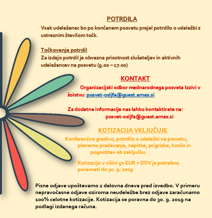 PRIJAVA NA POSVET PRIJAVA Z dnem, 12. 6. 2019, so prijave zaradi zasedenosti prostih mest zaprte. Deli povezavo: