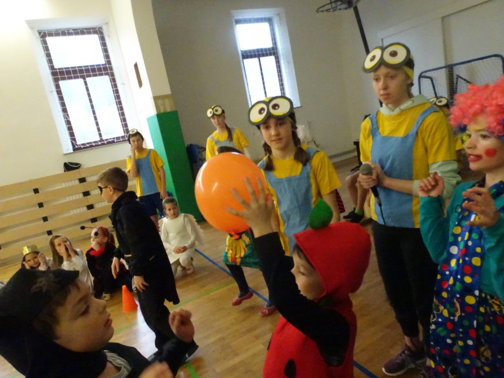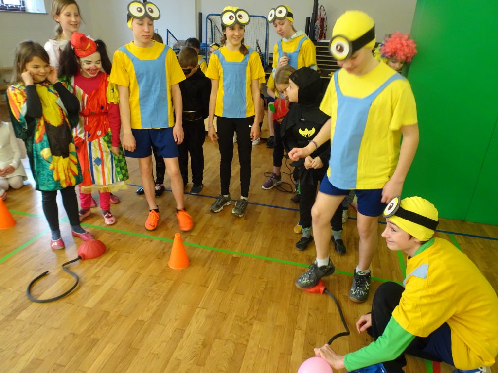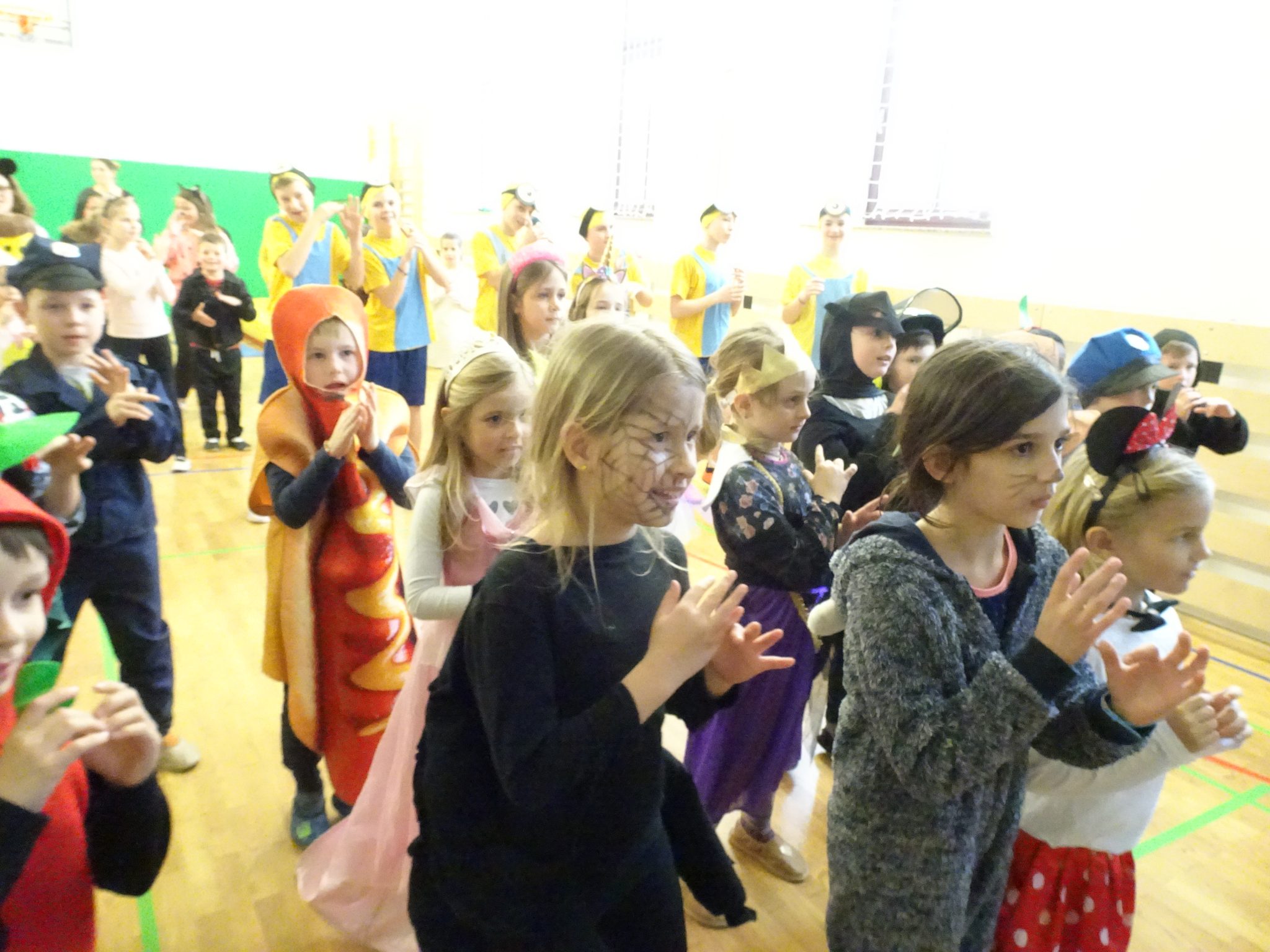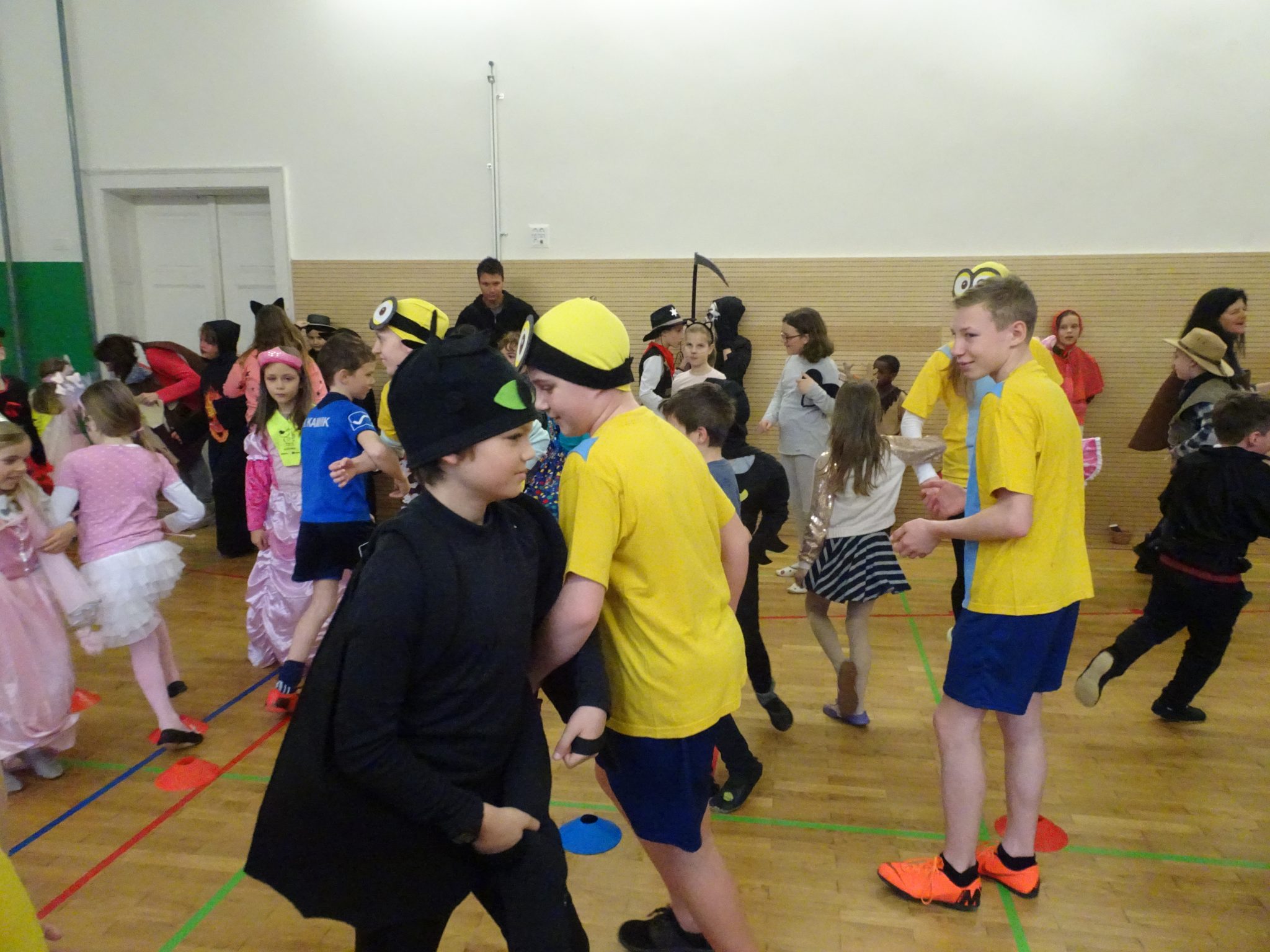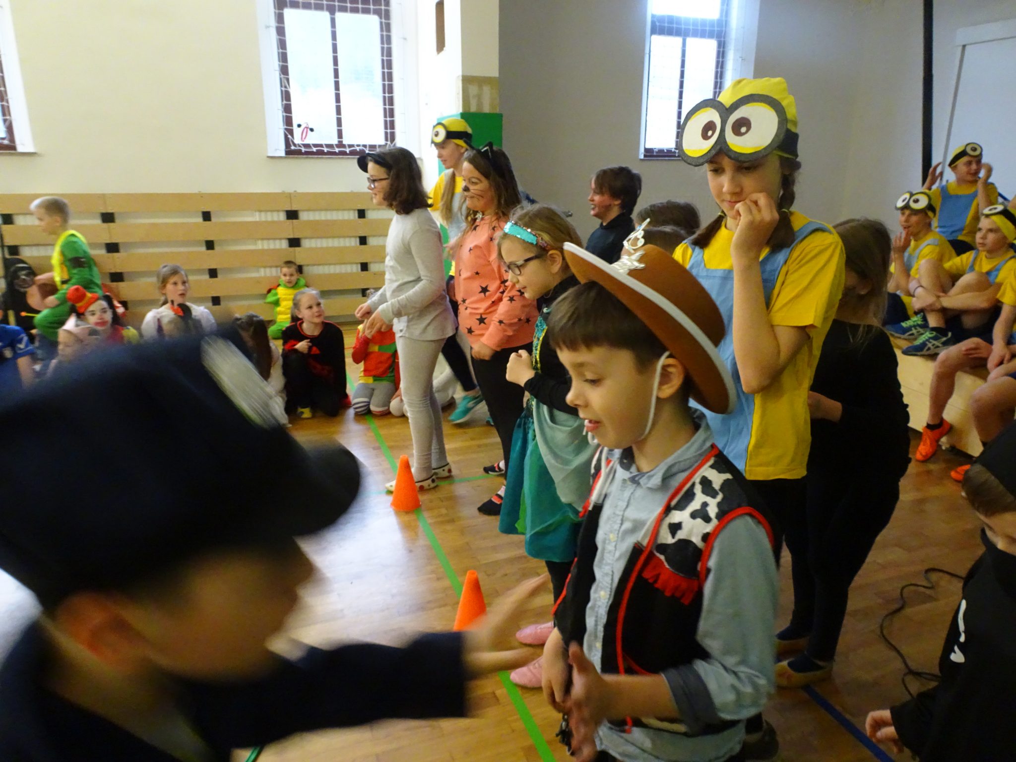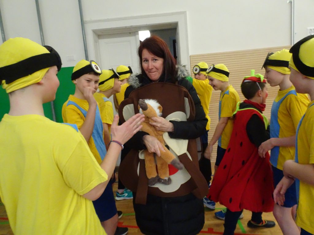 Tako kot vsako leto smo kljub deževnim kapljam odšli na pustno rajanje v telovadnico. Tam nas je pričakalo nekaj učencev predmetne stopnje, ki so pod vodstvom učiteljice Tamare pripravili zabavni program. Pustne šeme so se preizkusile v lovljenju, štafetnih igrah in plesu.