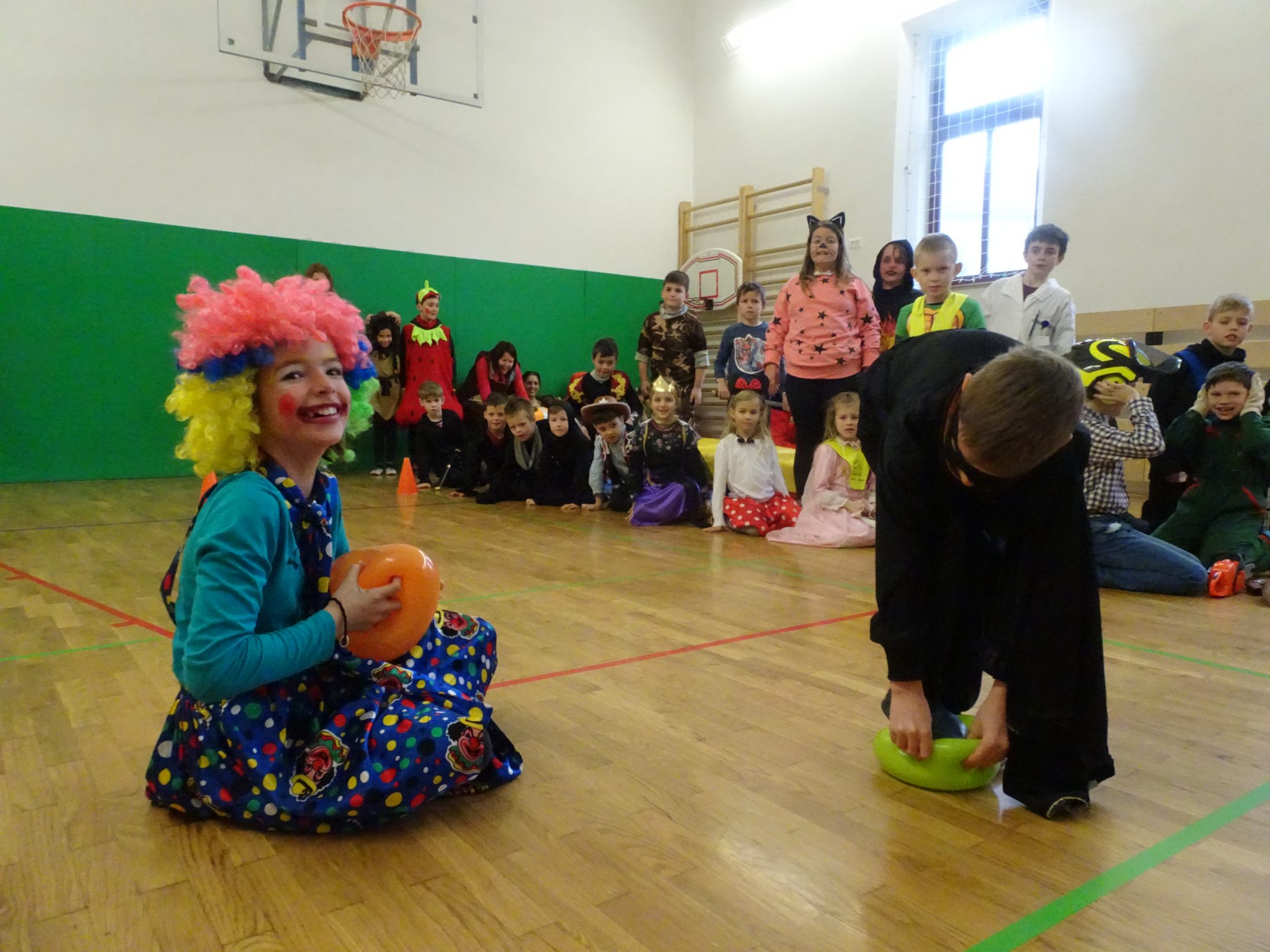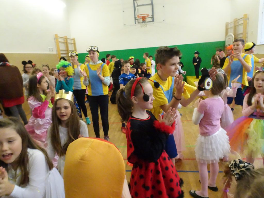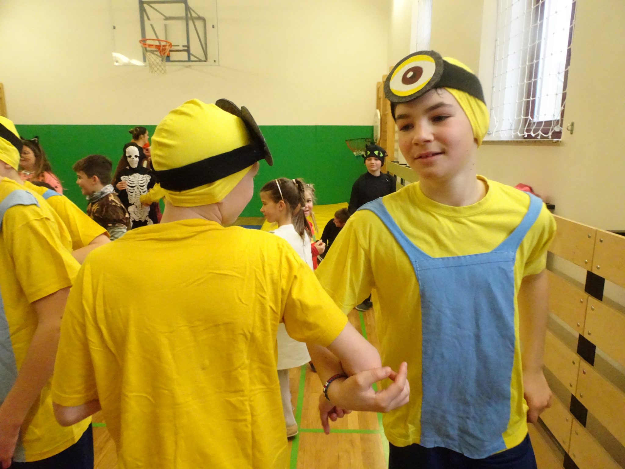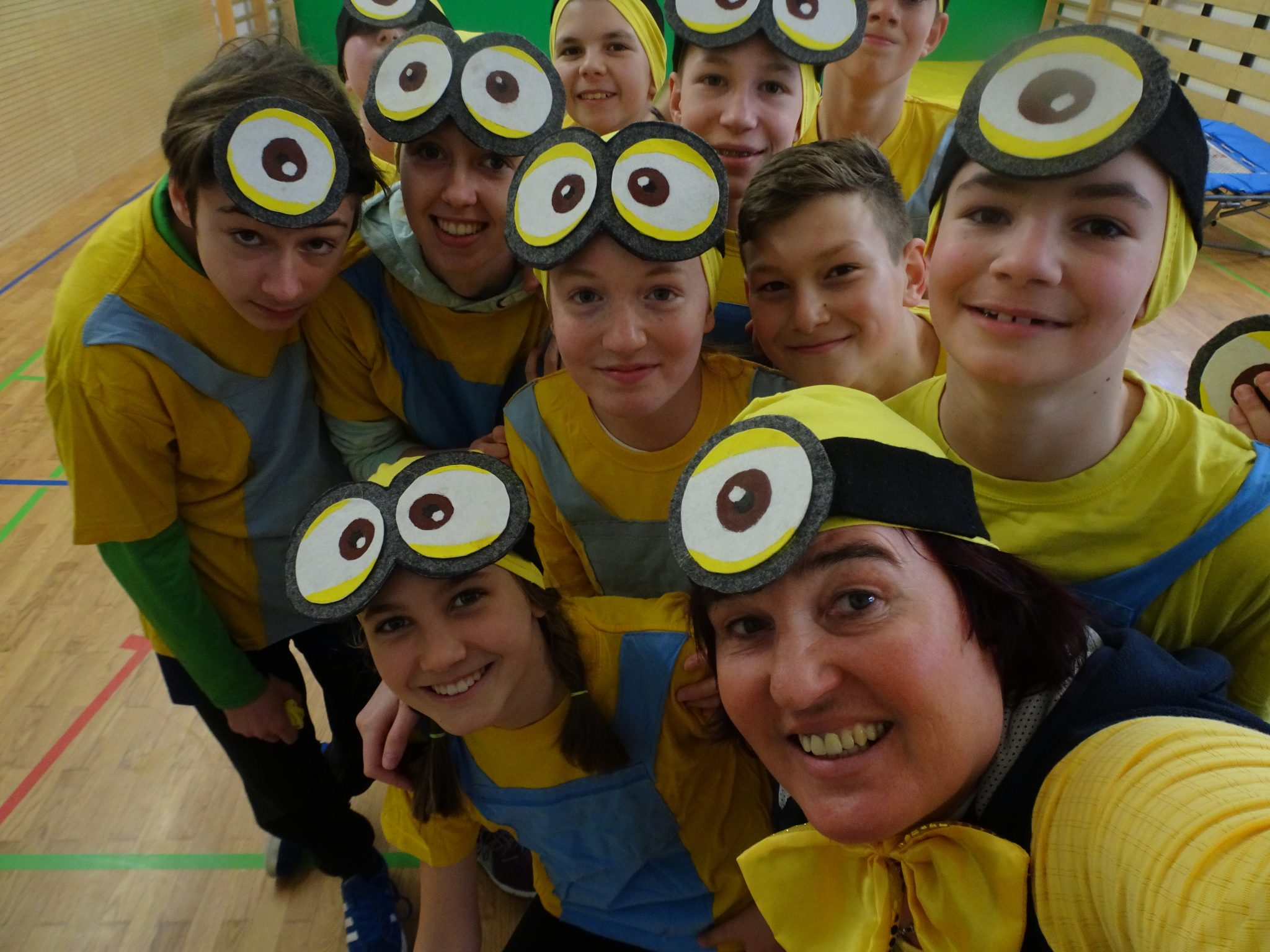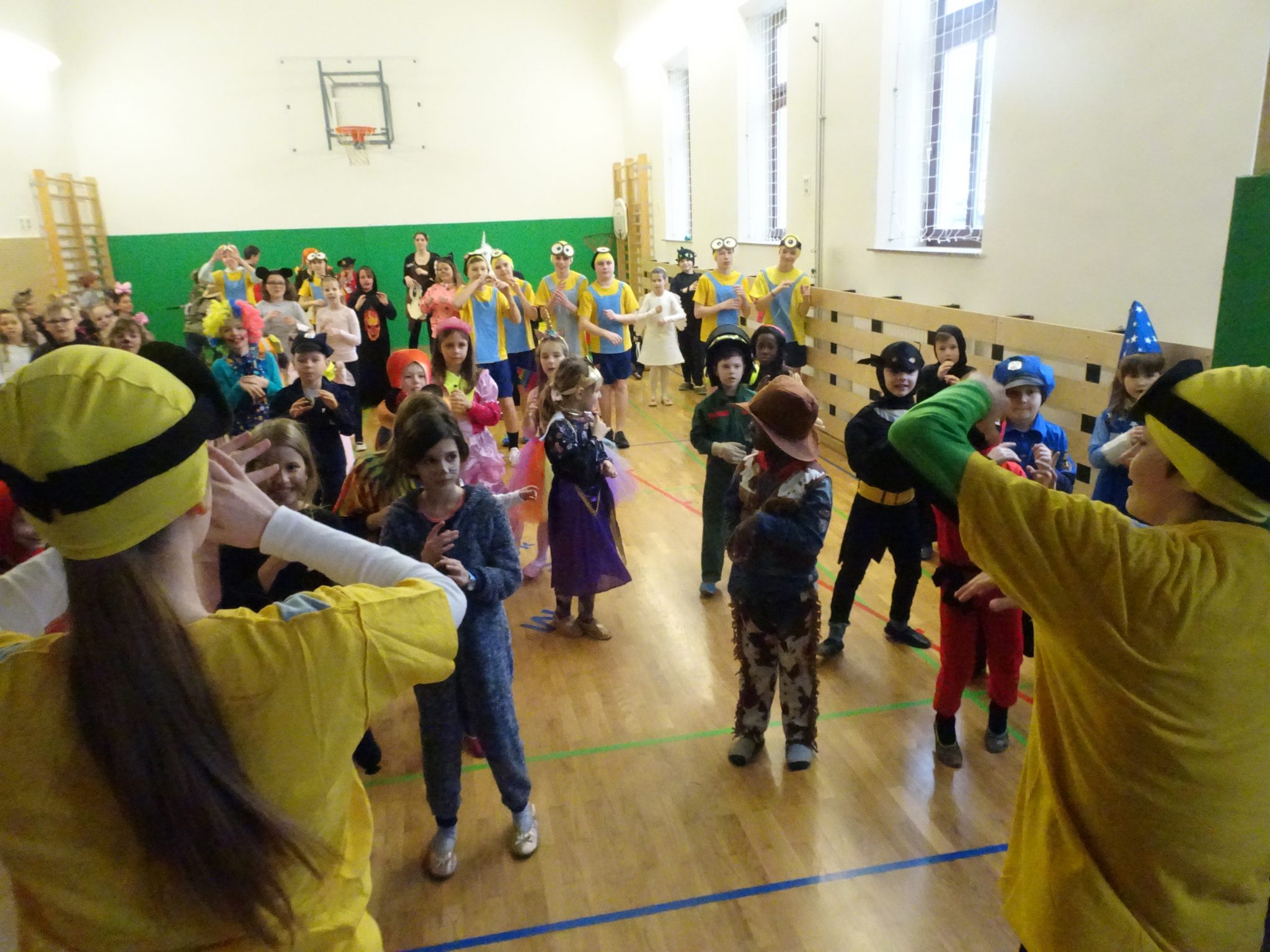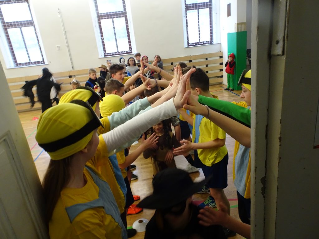 Tako kot vsako leto smo kljub deževnim kapljam odšli na pustno rajanje v telovadnico. Tam nas je pričakalo nekaj učencev predmetne stopnje, ki so pod vodstvom učiteljice Tamare pripravili zabavni program. Pustne šeme so se preizkusile v lovljenju, štafetnih igrah in plesu.