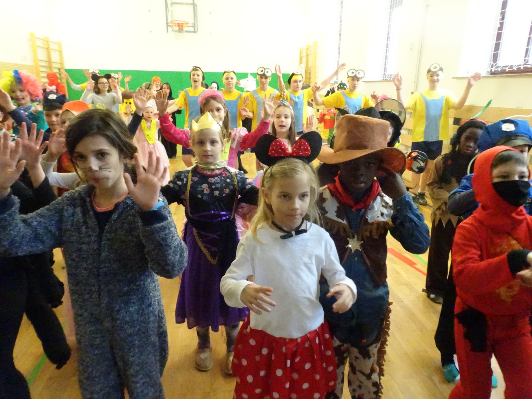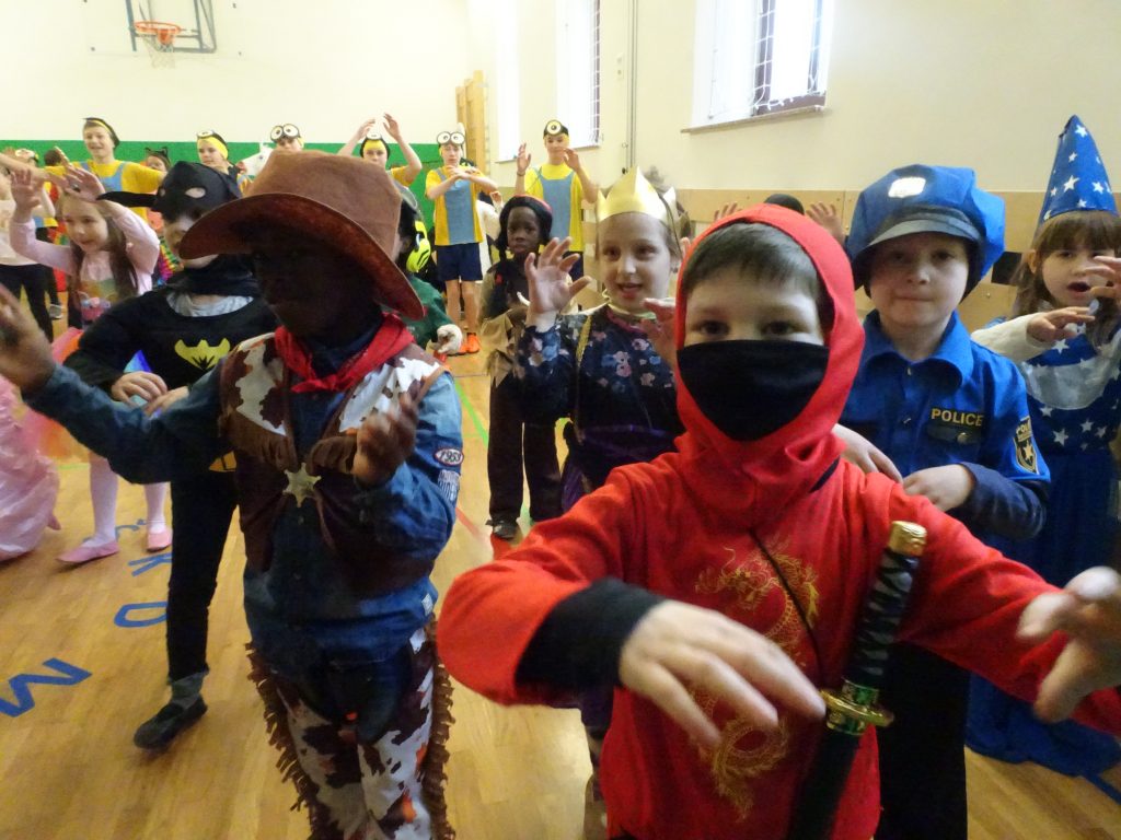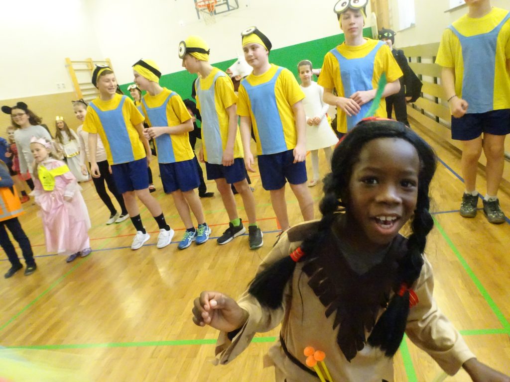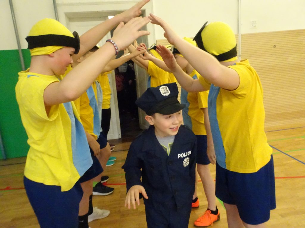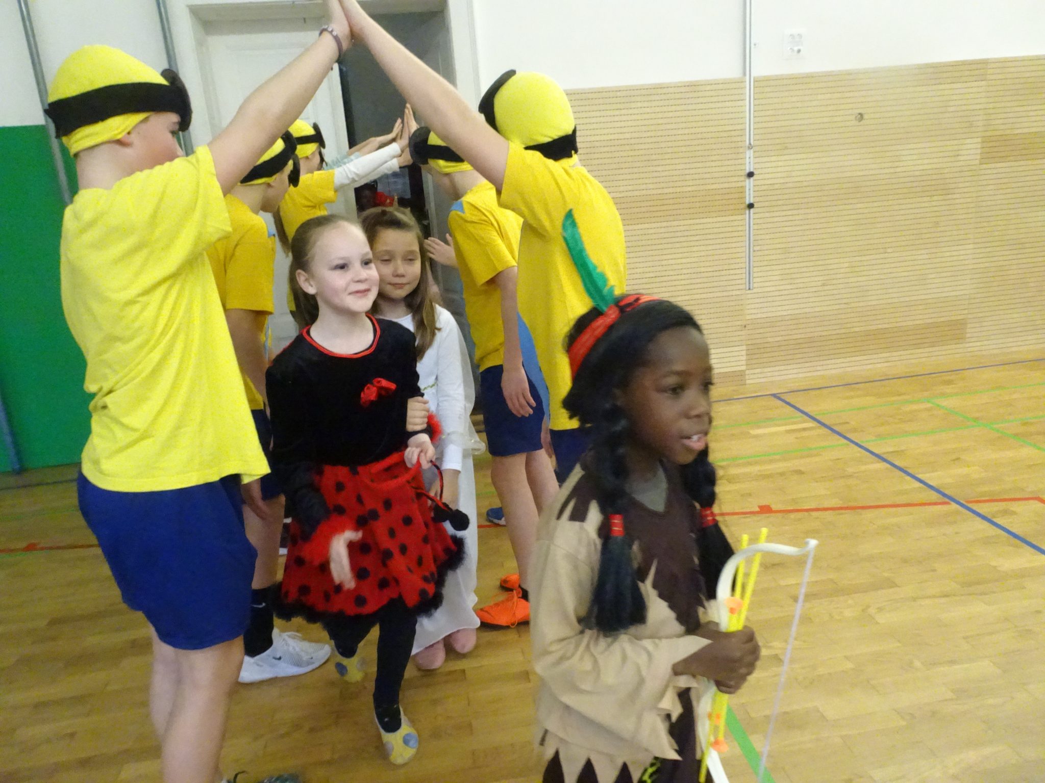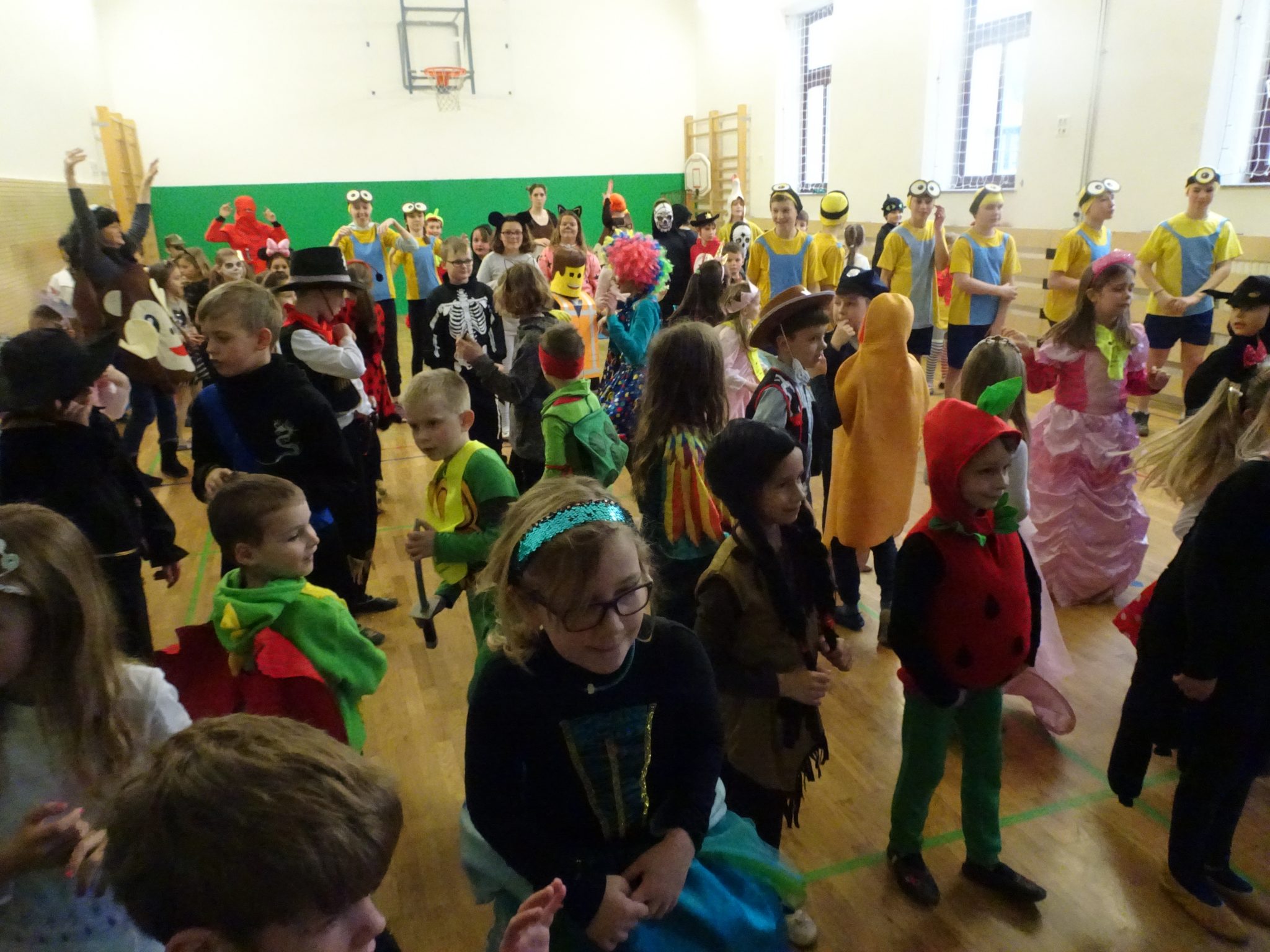 Tako kot vsako leto smo kljub deževnim kapljam odšli na pustno rajanje v telovadnico. Tam nas je pričakalo nekaj učencev predmetne stopnje, ki so pod vodstvom učiteljice Tamare pripravili zabavni program. Pustne šeme so se preizkusile v lovljenju, štafetnih igrah in plesu.