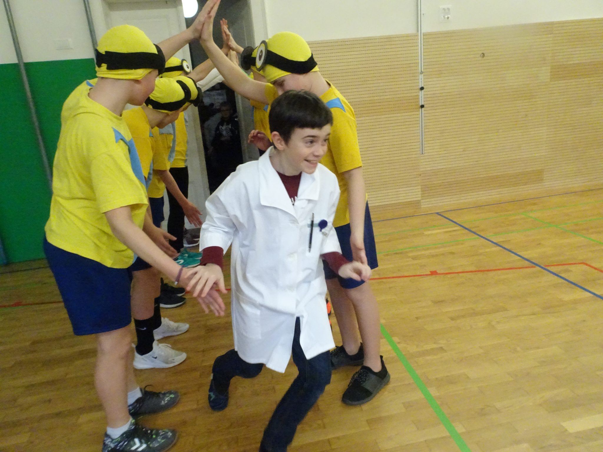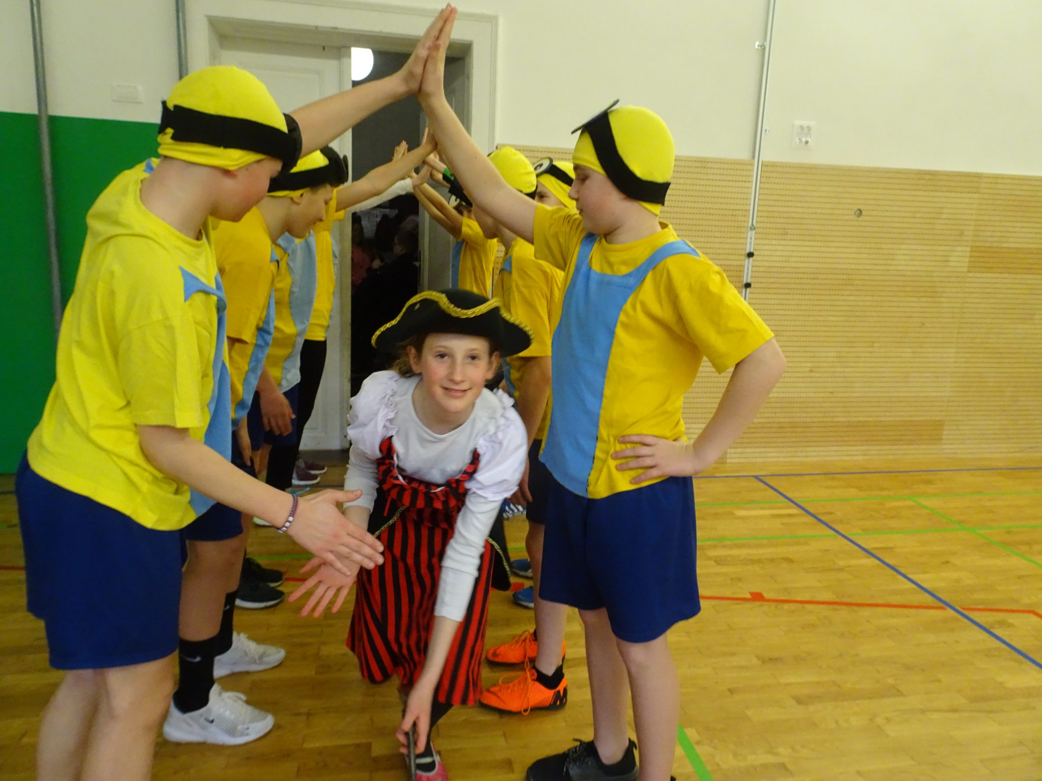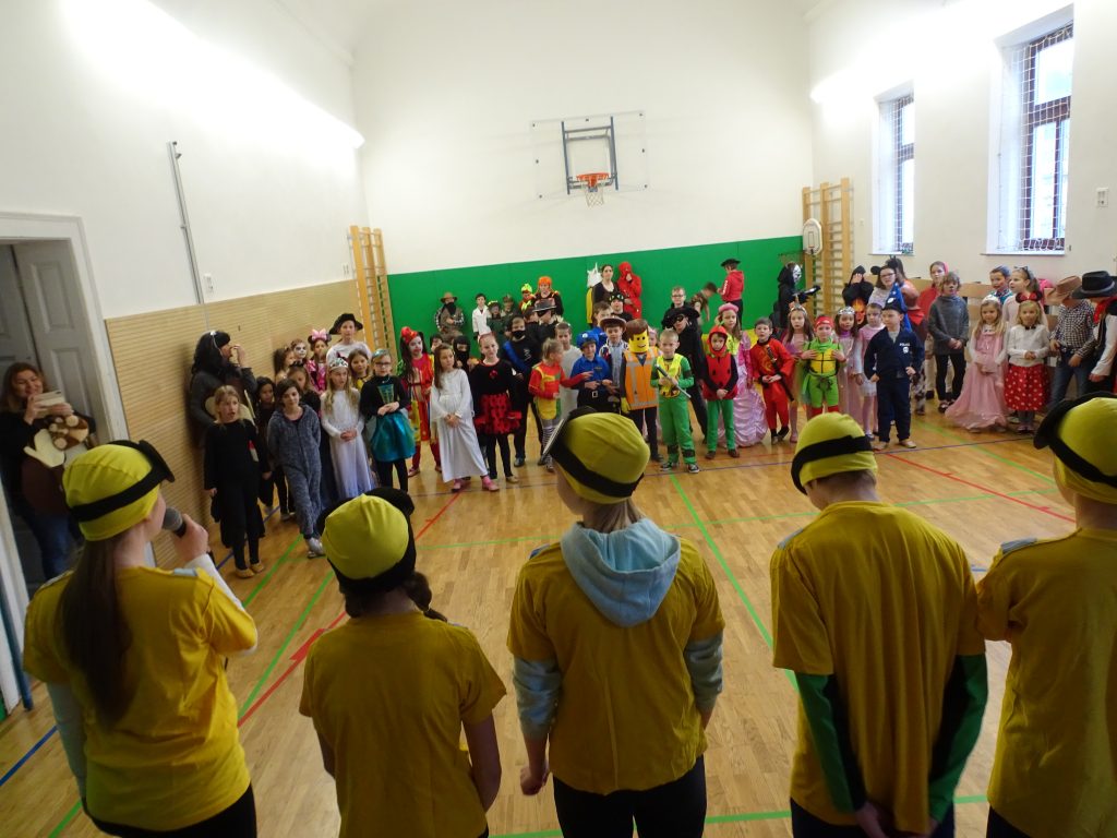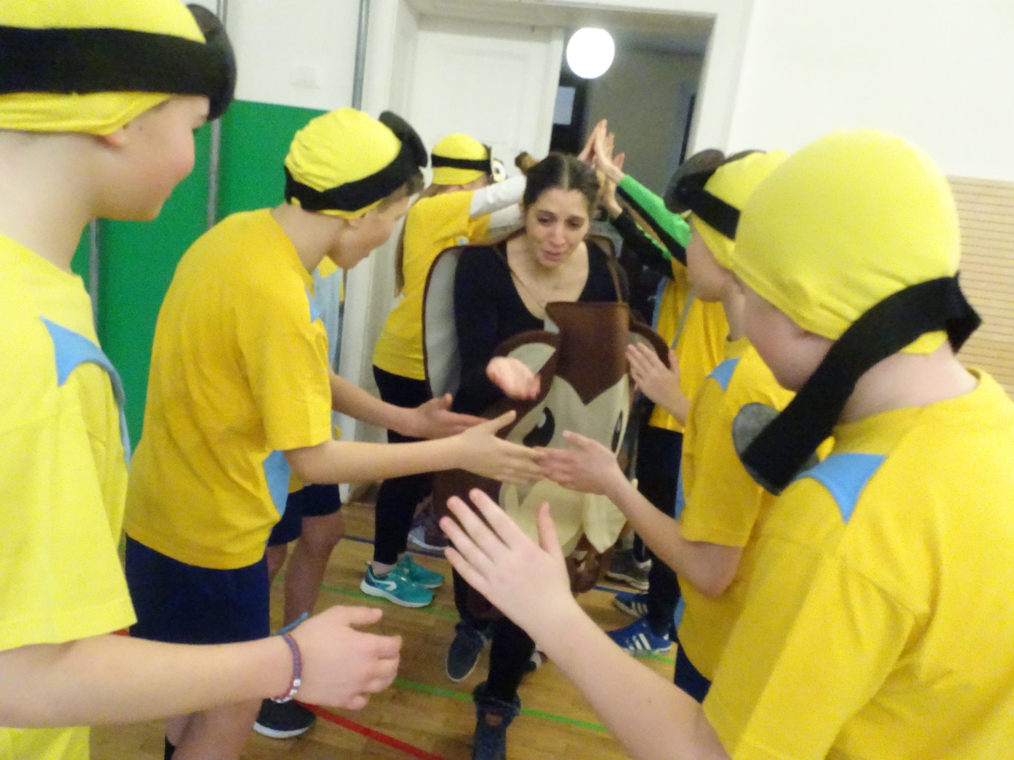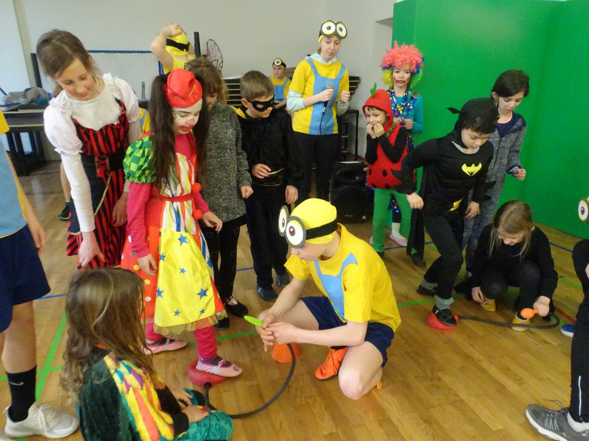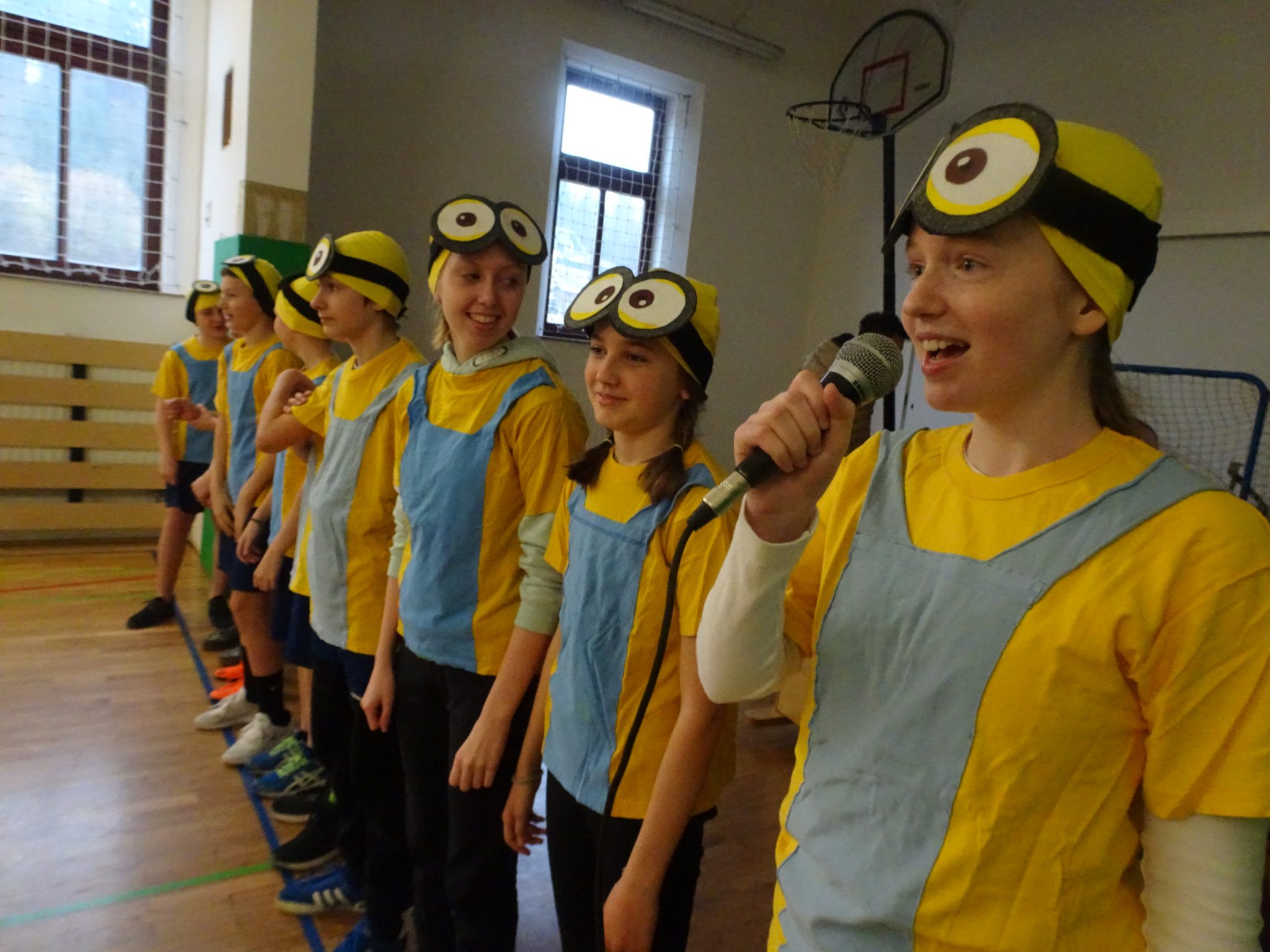 Tako kot vsako leto smo kljub deževnim kapljam odšli na pustno rajanje v telovadnico. Tam nas je pričakalo nekaj učencev predmetne stopnje, ki so pod vodstvom učiteljice Tamare pripravili zabavni program. Pustne šeme so se preizkusile v lovljenju, štafetnih igrah in plesu.