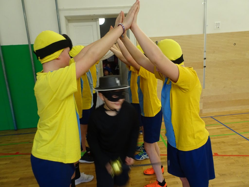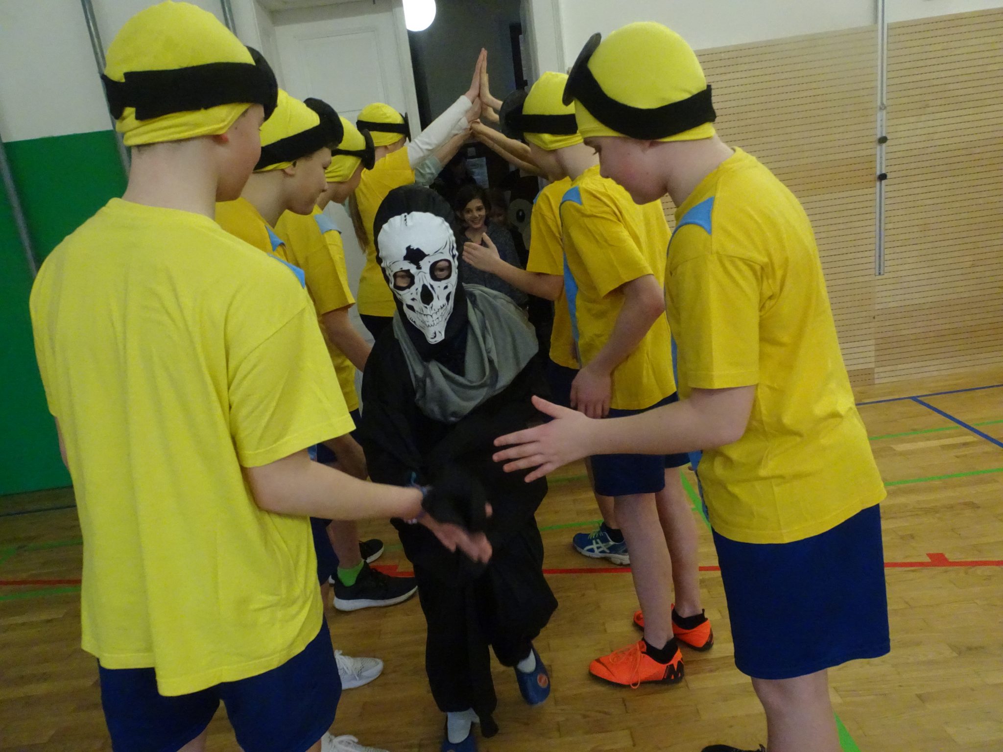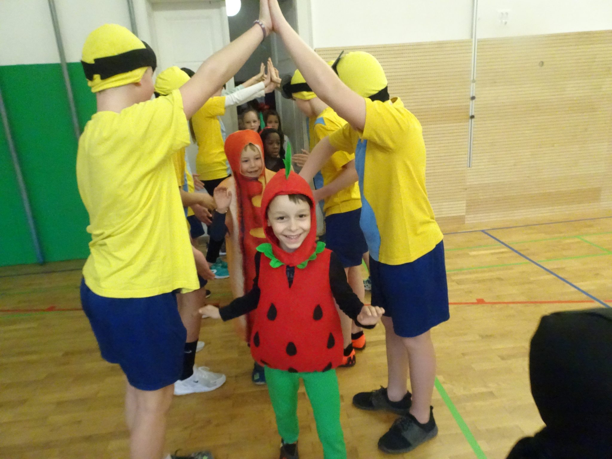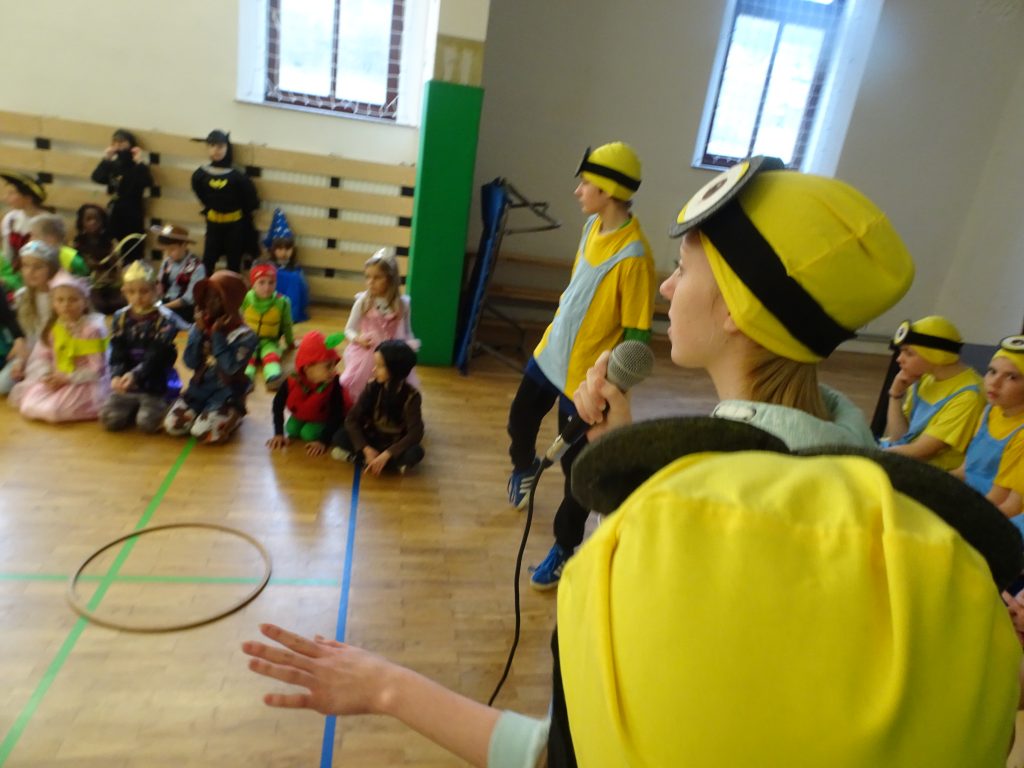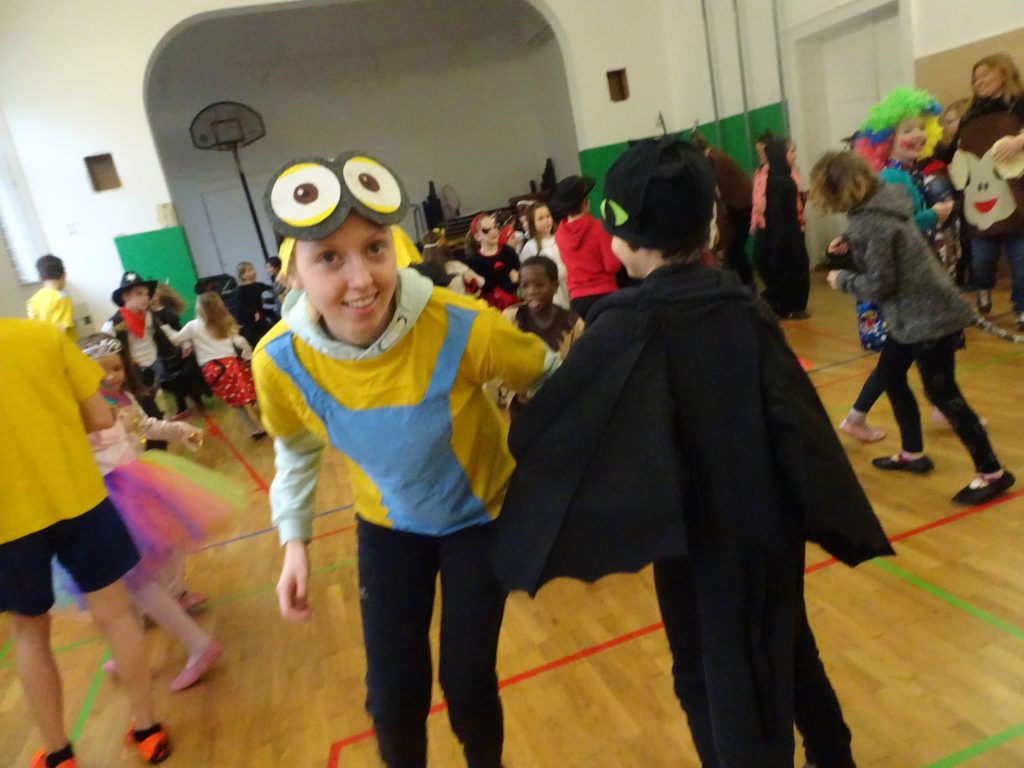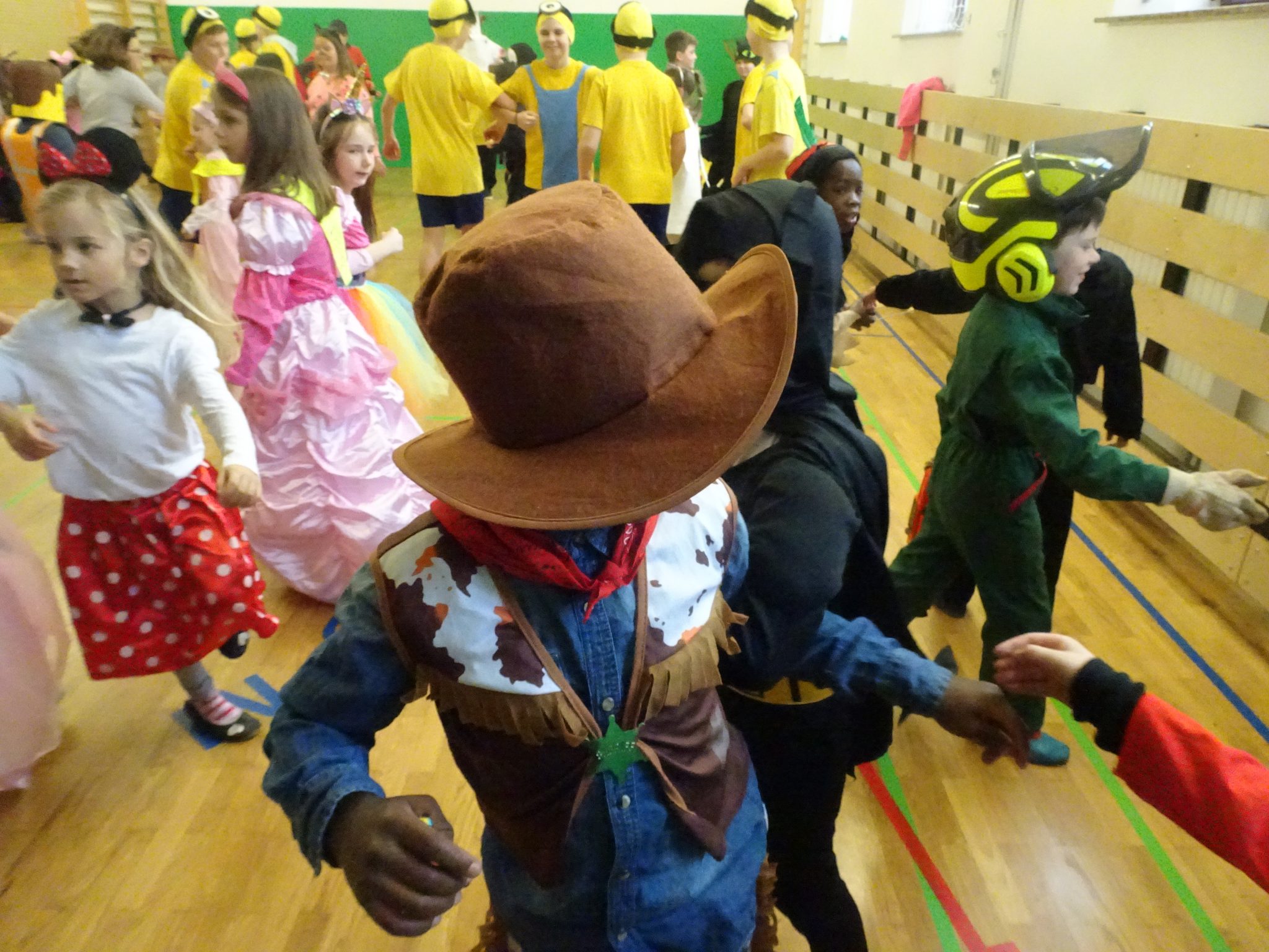 Tako kot vsako leto smo kljub deževnim kapljam odšli na pustno rajanje v telovadnico. Tam nas je pričakalo nekaj učencev predmetne stopnje, ki so pod vodstvom učiteljice Tamare pripravili zabavni program. Pustne šeme so se preizkusile v lovljenju, štafetnih igrah in plesu.