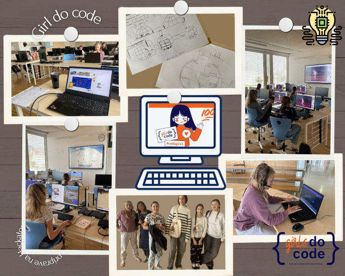 V okviru programa Kodiraj prihodnost – AI za dekleta, ki ga organizira Digital School, se je osem učenk naše šole udeležilo dveh pripravljalnih delavnic, ki so potekale v soboto, 11. 10. in 18. 10. 2025, preko spleta v okolju Microsoft Teams. Čeprav so bile delavnice zasnovane kot spletne, smo se odločili, da se deklice zberejo kar v računalniški učilnici naše šole, kjer so skupaj ustvarjale, se učile in se ob tem tudi zabavale.