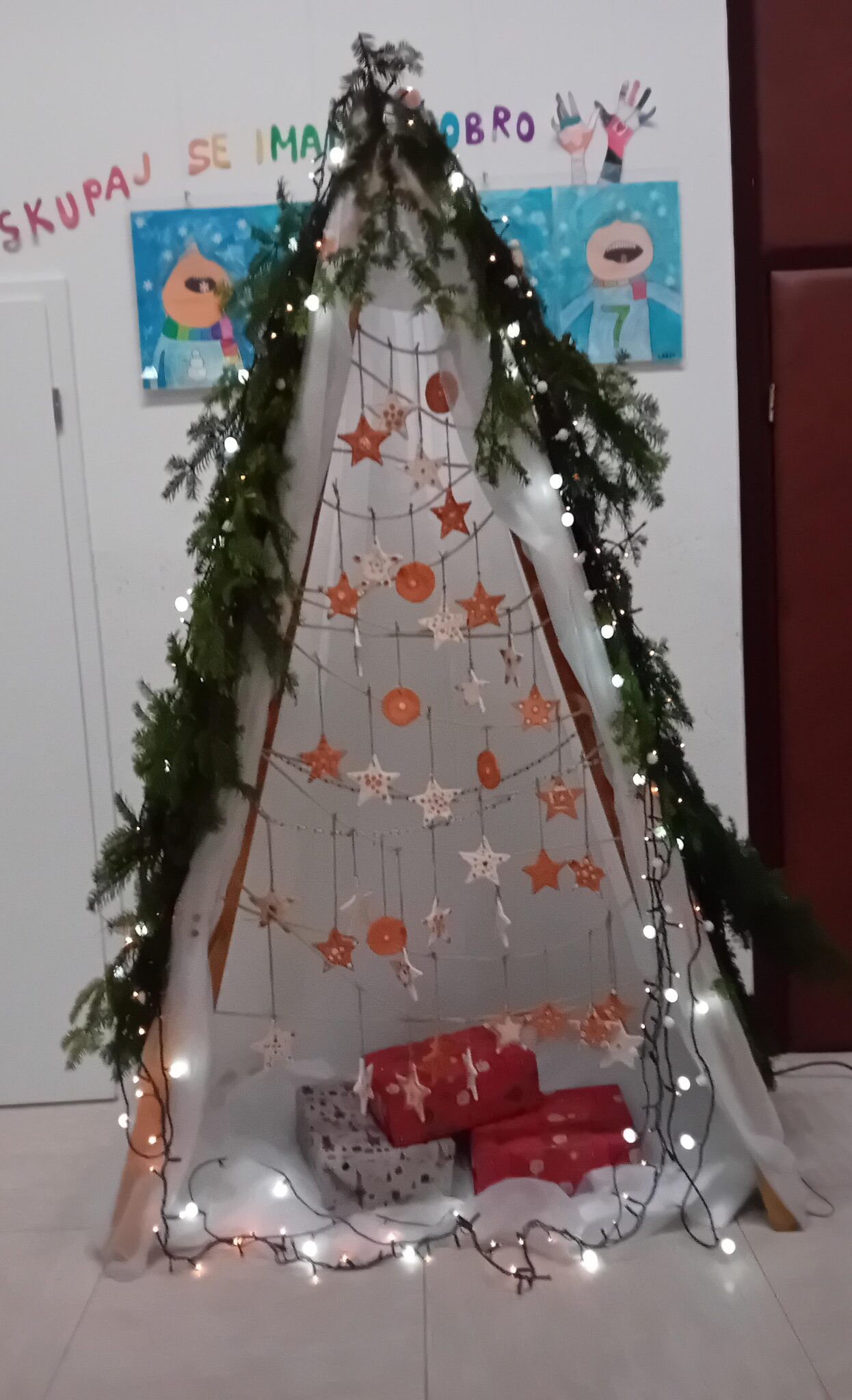 - Z okraski, ki smo jih izdelali iz gline smo v sodelovanju s TIC-em okrasili smrečici na Šutni. V zahvalo za sodelovanje smo se posladkali s piškoti in čajem.