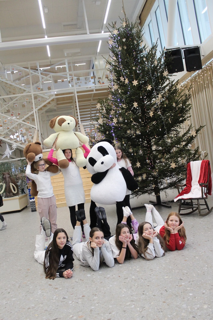 Velikost igrač je osupljiva – panda, ki jo je ustvarila Manca, meri v višino kar 150 cm, medtem ko je Zalin kuža visok okoli enega metra. Na fotografiranju se jima je pridružil še medo Brundo, kvačkana igračka, ki jo je Manca izdelala v preteklem šolskem letu. Vse tri igračke so bile izdelane po natančnih navodilih in s skrbno izvedbo.